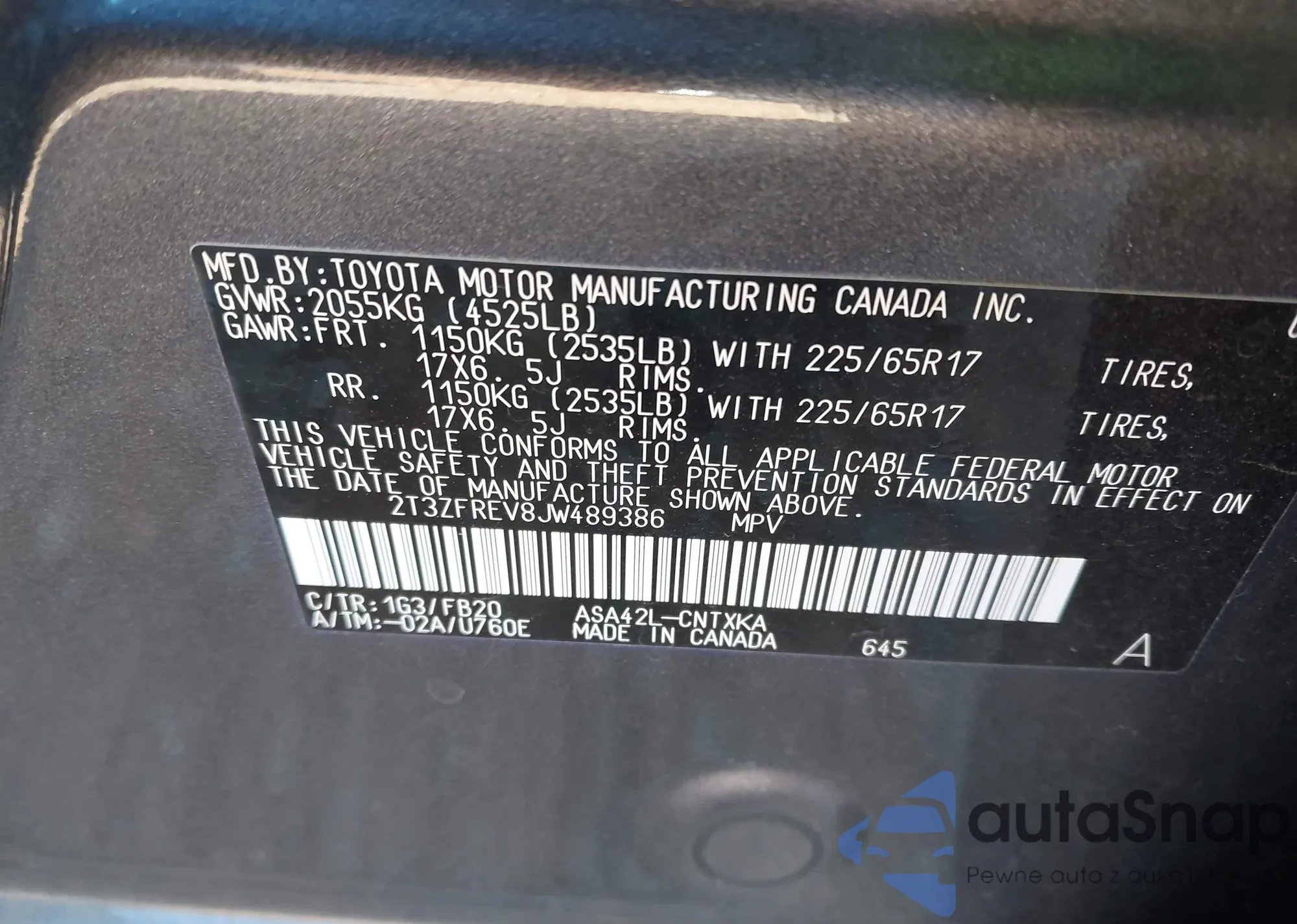 VIN: 2T3ZFREV8JW489386