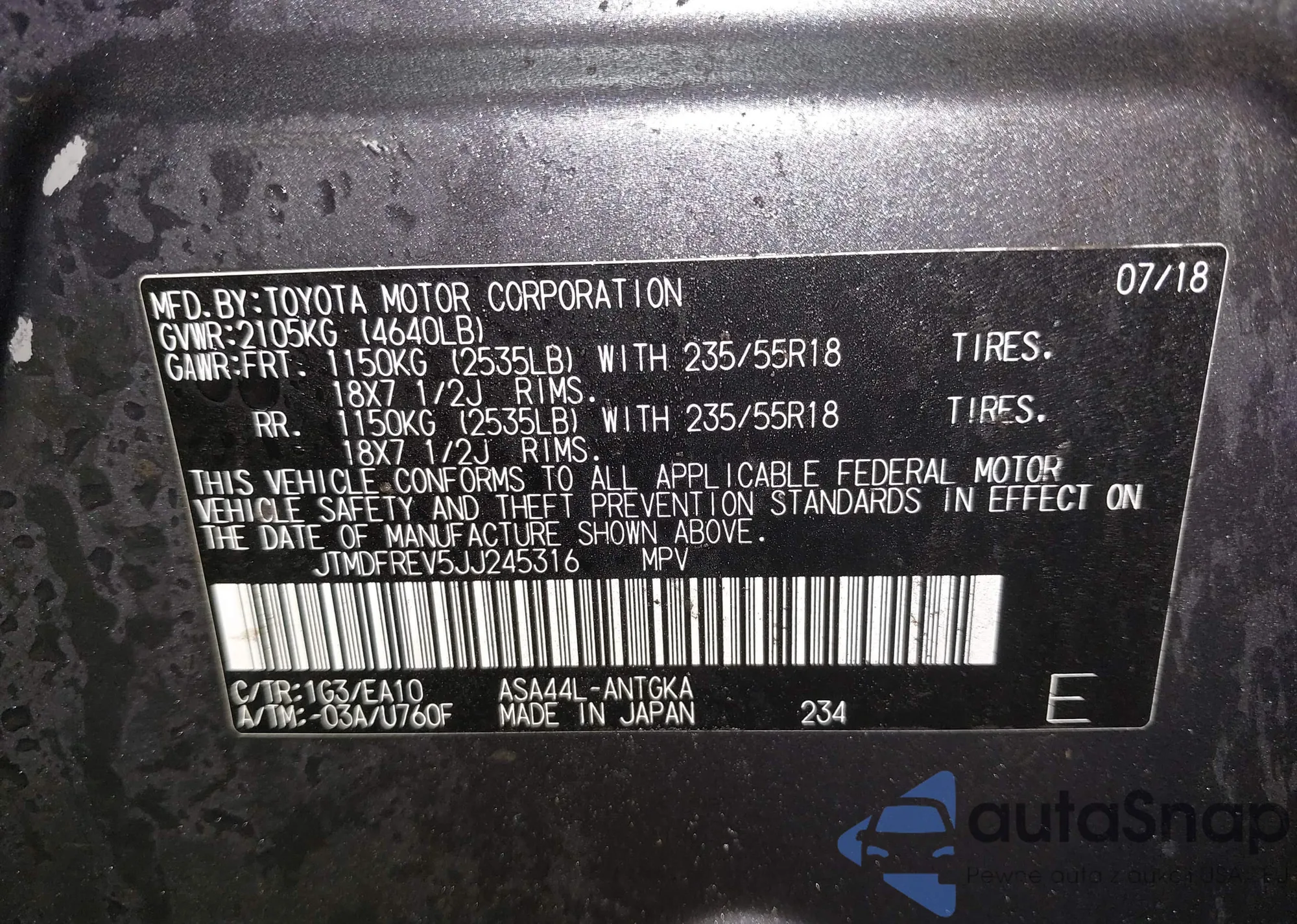 VIN: JTMDFREV5JJ245316