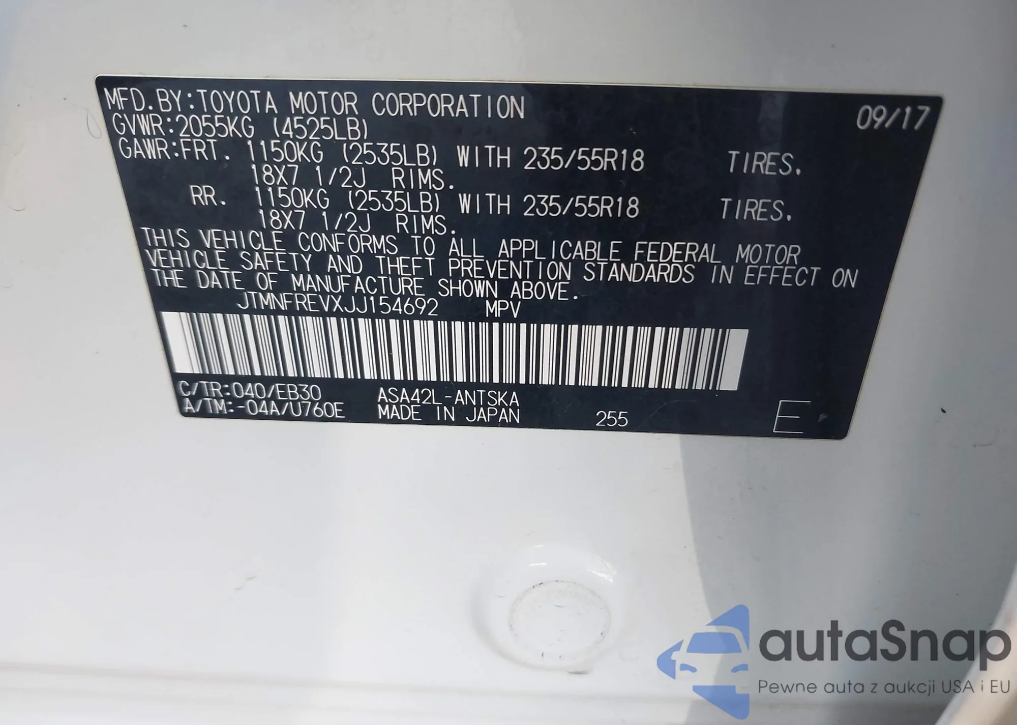 VIN: JTMNFREVXJJ154692