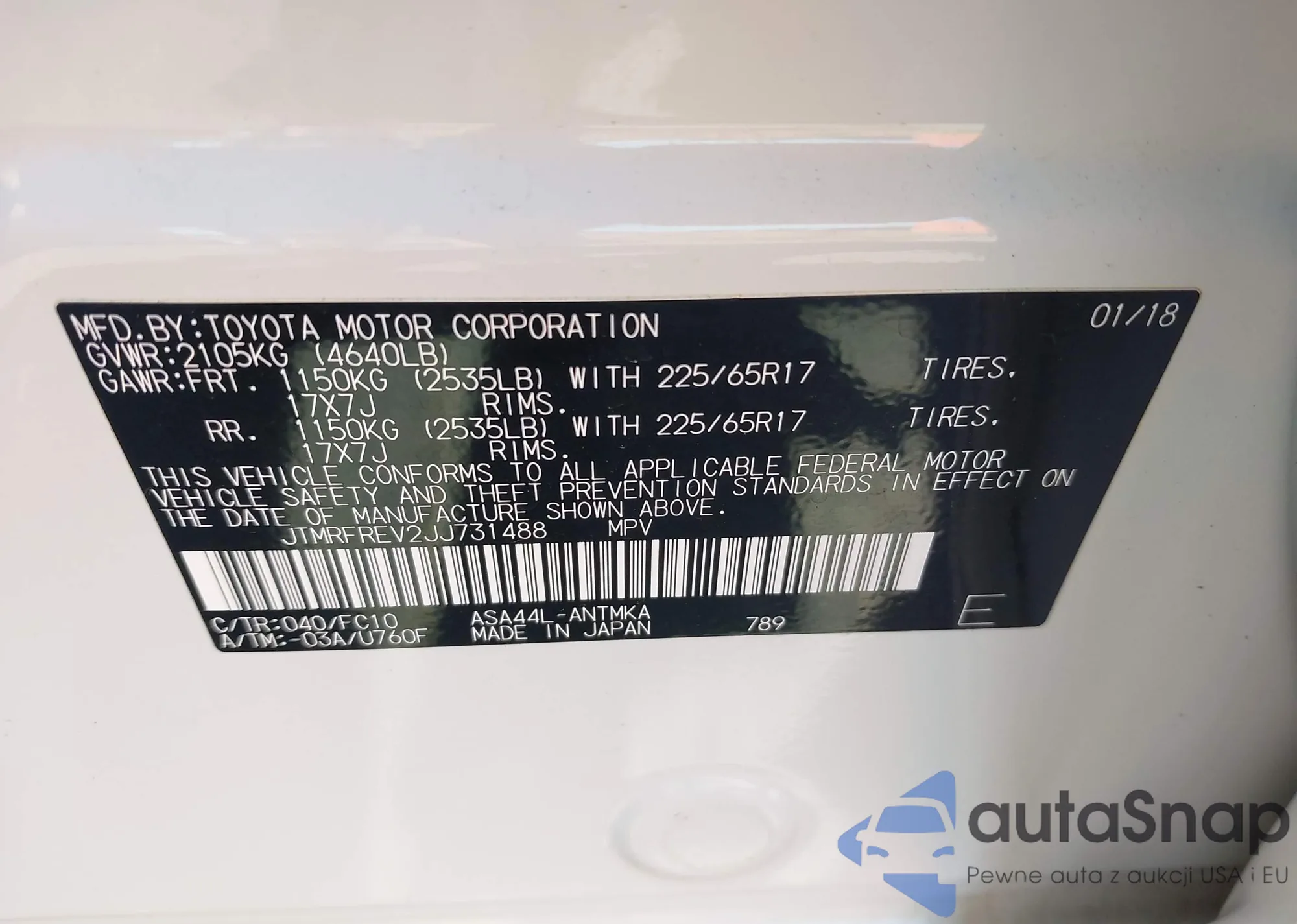 VIN: JTMRFREV2JJ731488