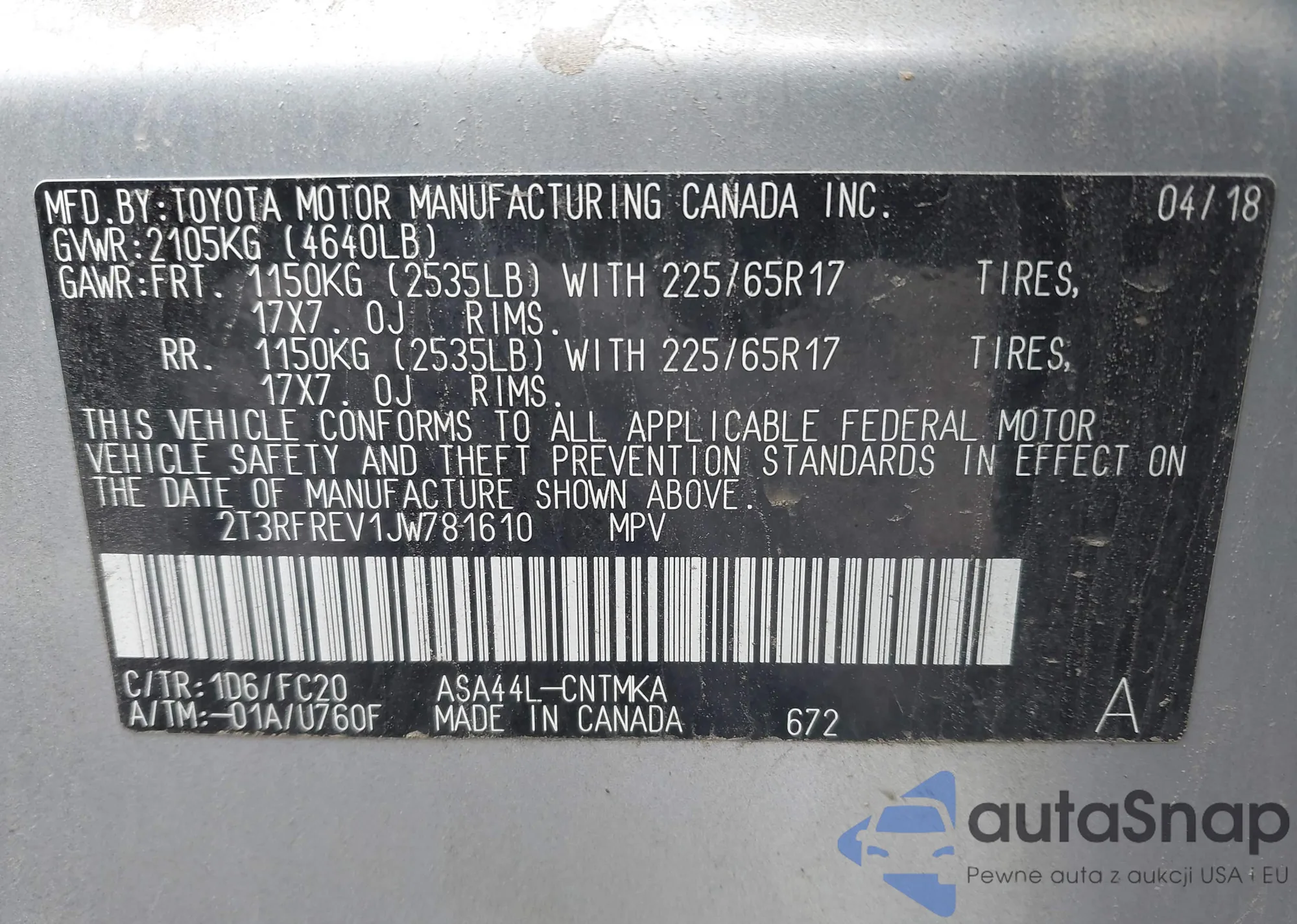 VIN: 2T3RFREV1JW781610
