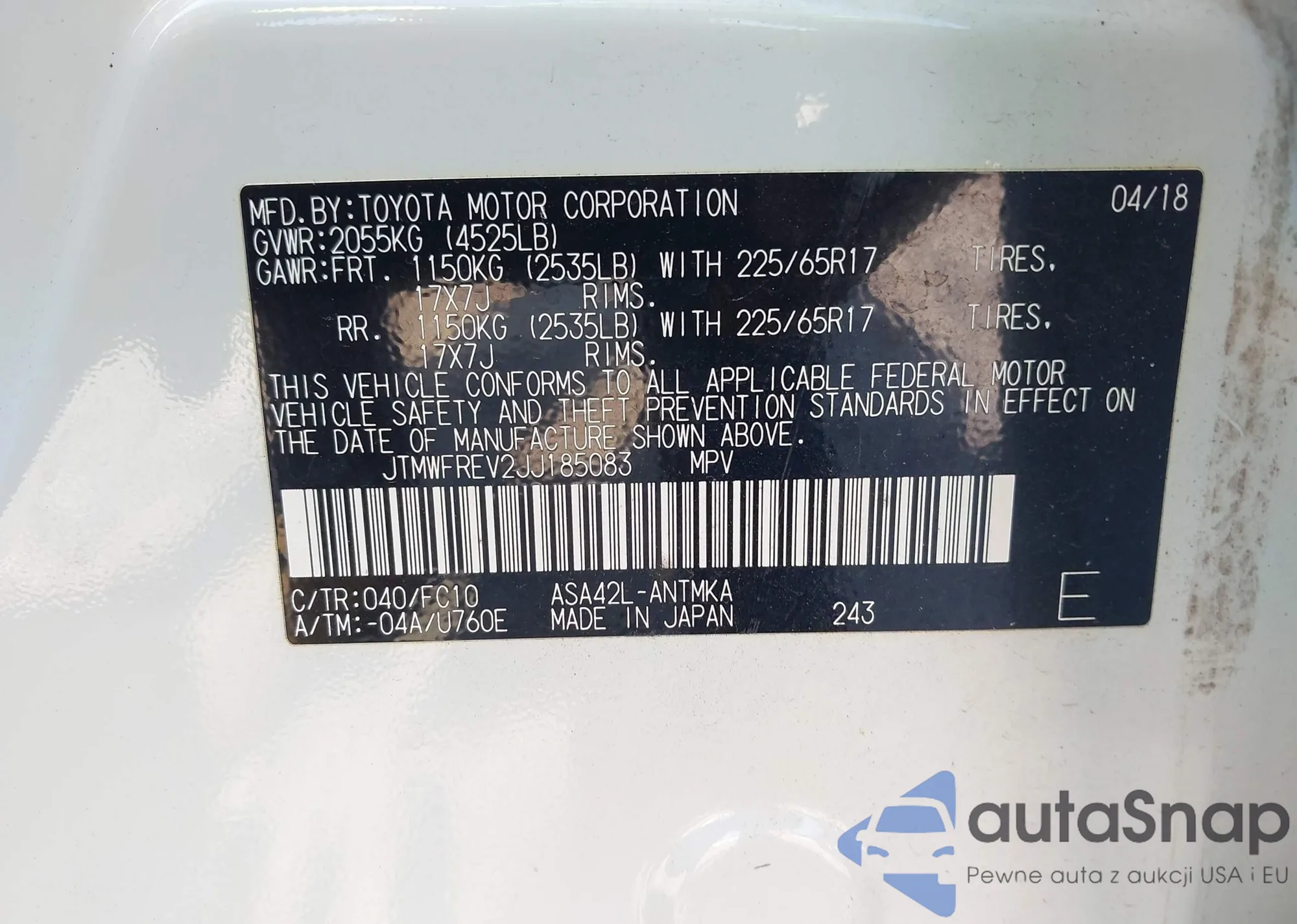 VIN: JTMWFREV2JJ185083