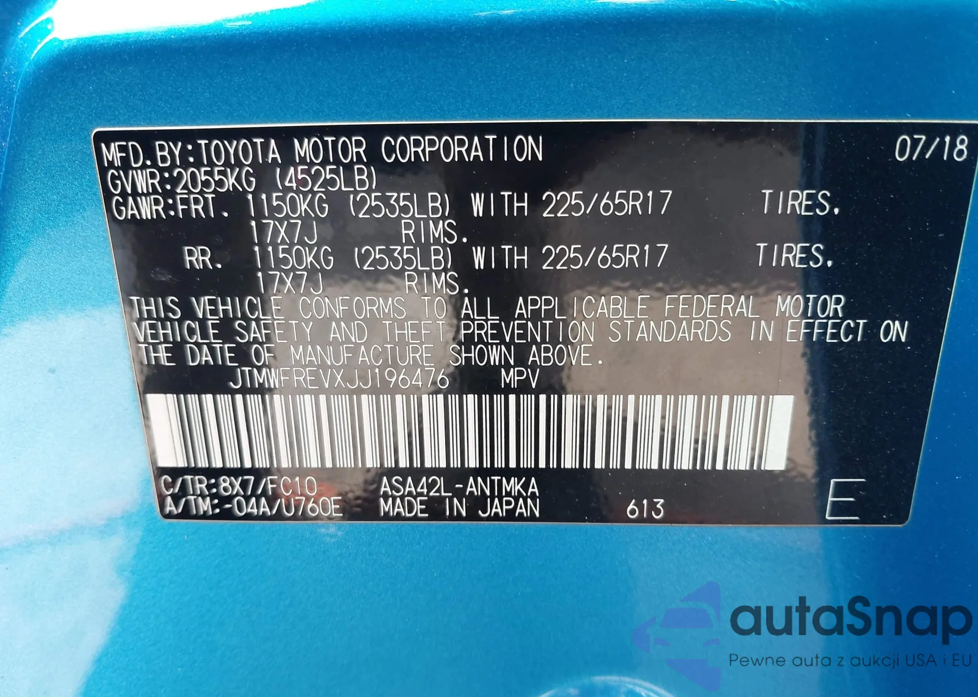 VIN: JTMWFREVXJJ196476
