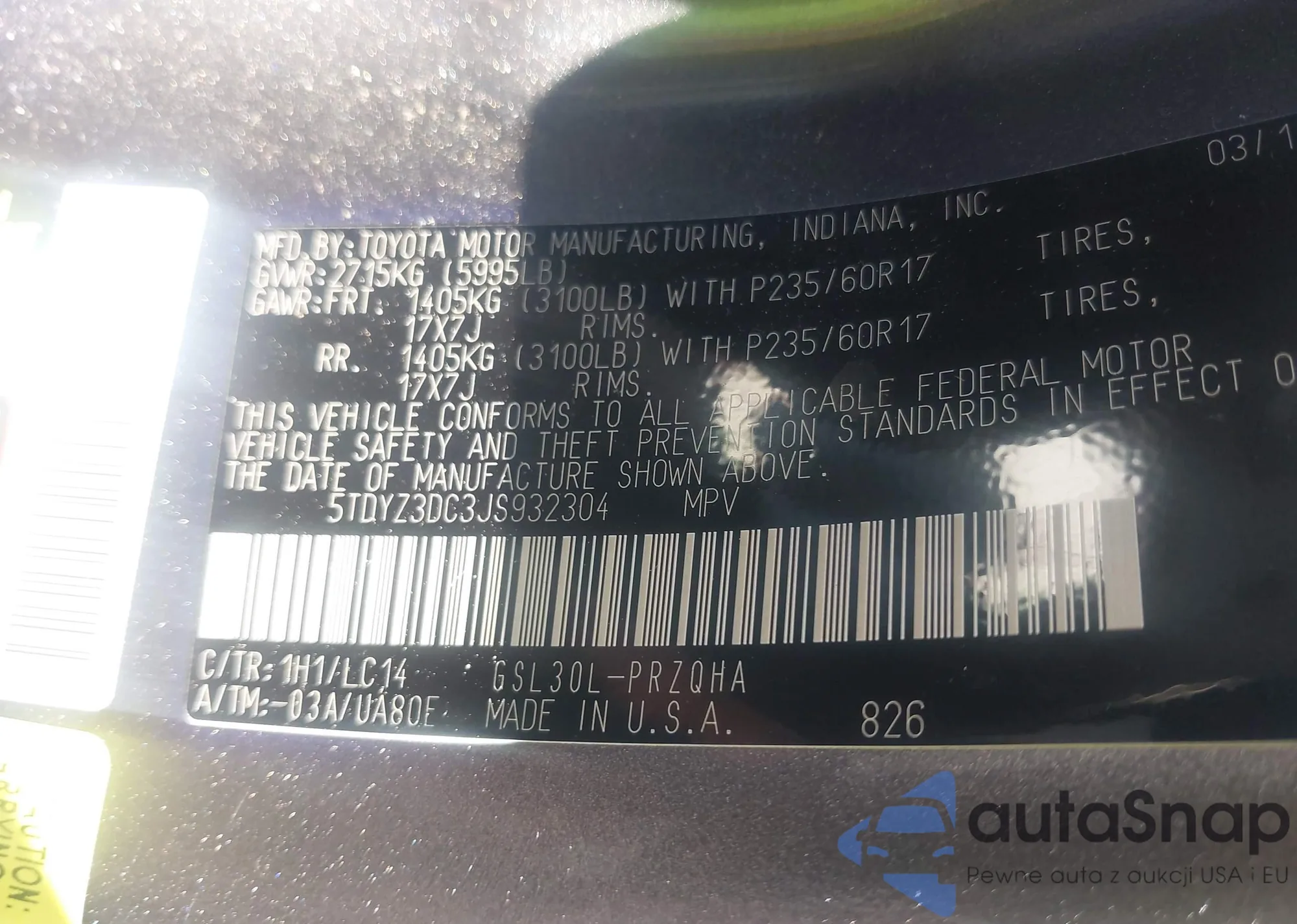 VIN: 5TDYZ3DC3JS932304