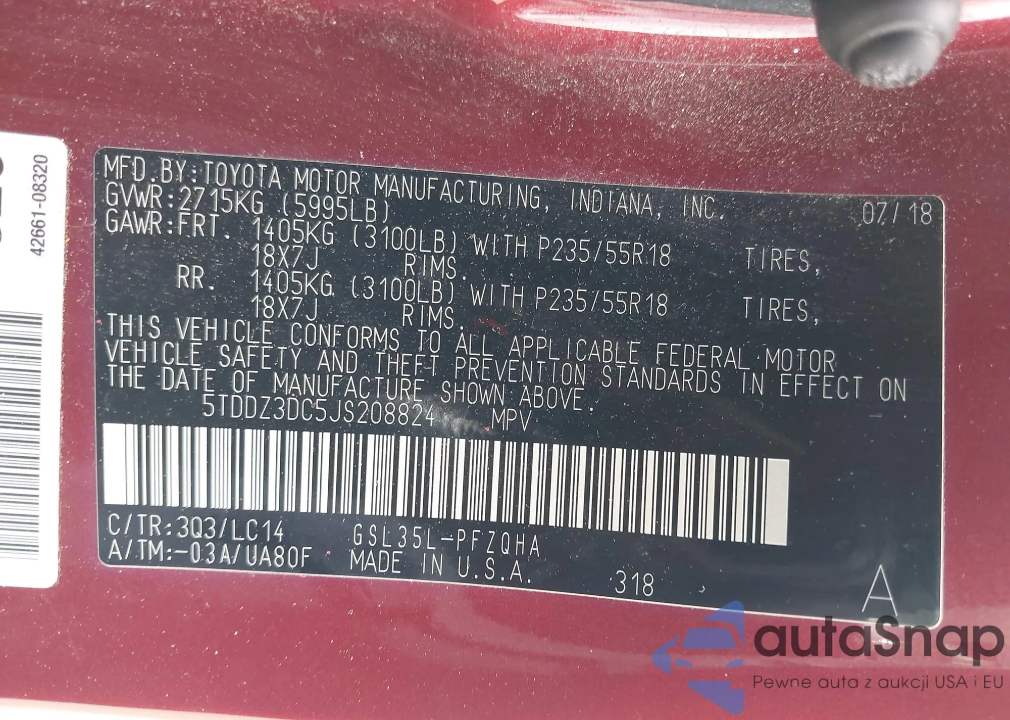 VIN: 5TDDZ3DC5JS208824