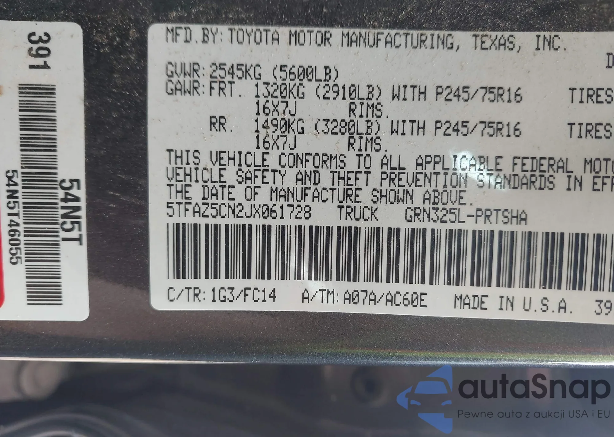 VIN: 5TFAZ5CN2JX061728
