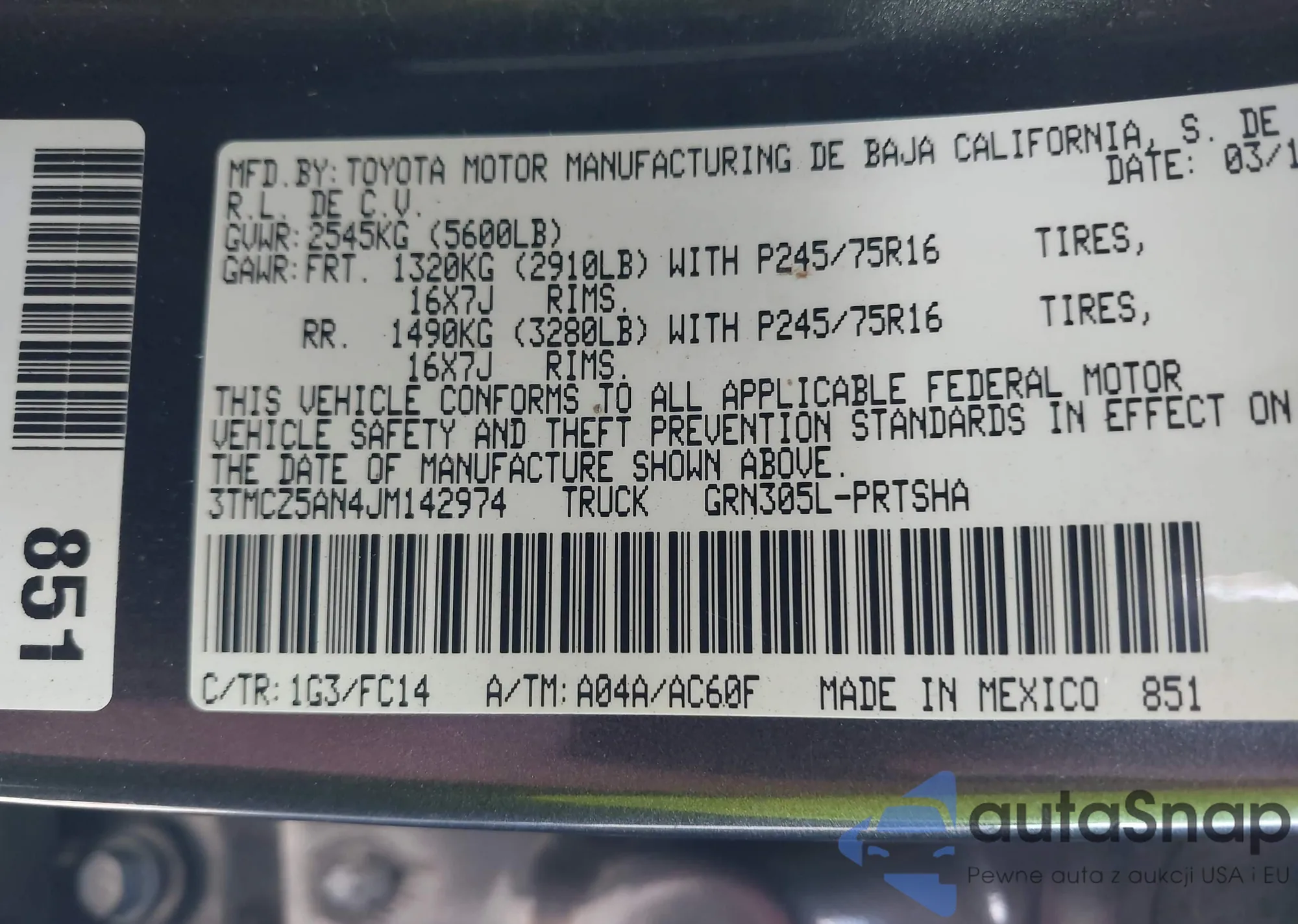VIN: 3TMCZ5AN4JM142974