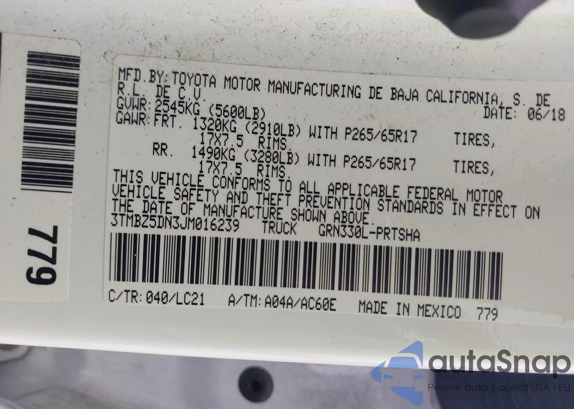 • VIN: 3TMBZ5DN3JM016239