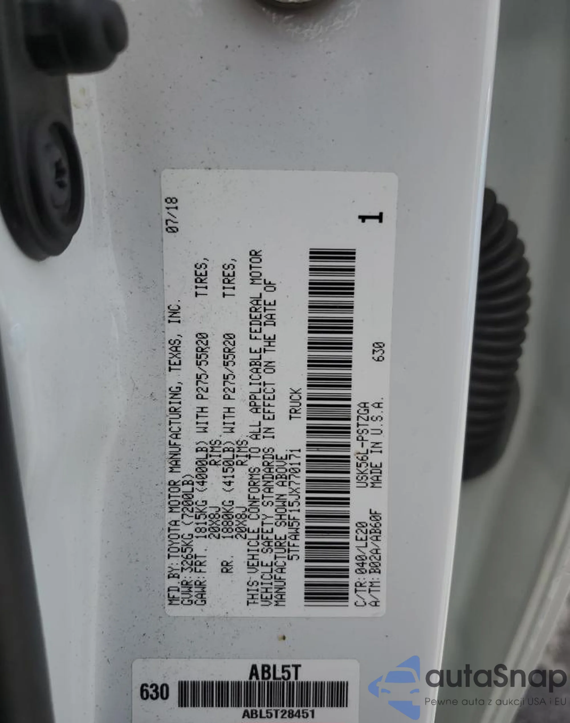 VIN: 5TFAW5F15JX770171