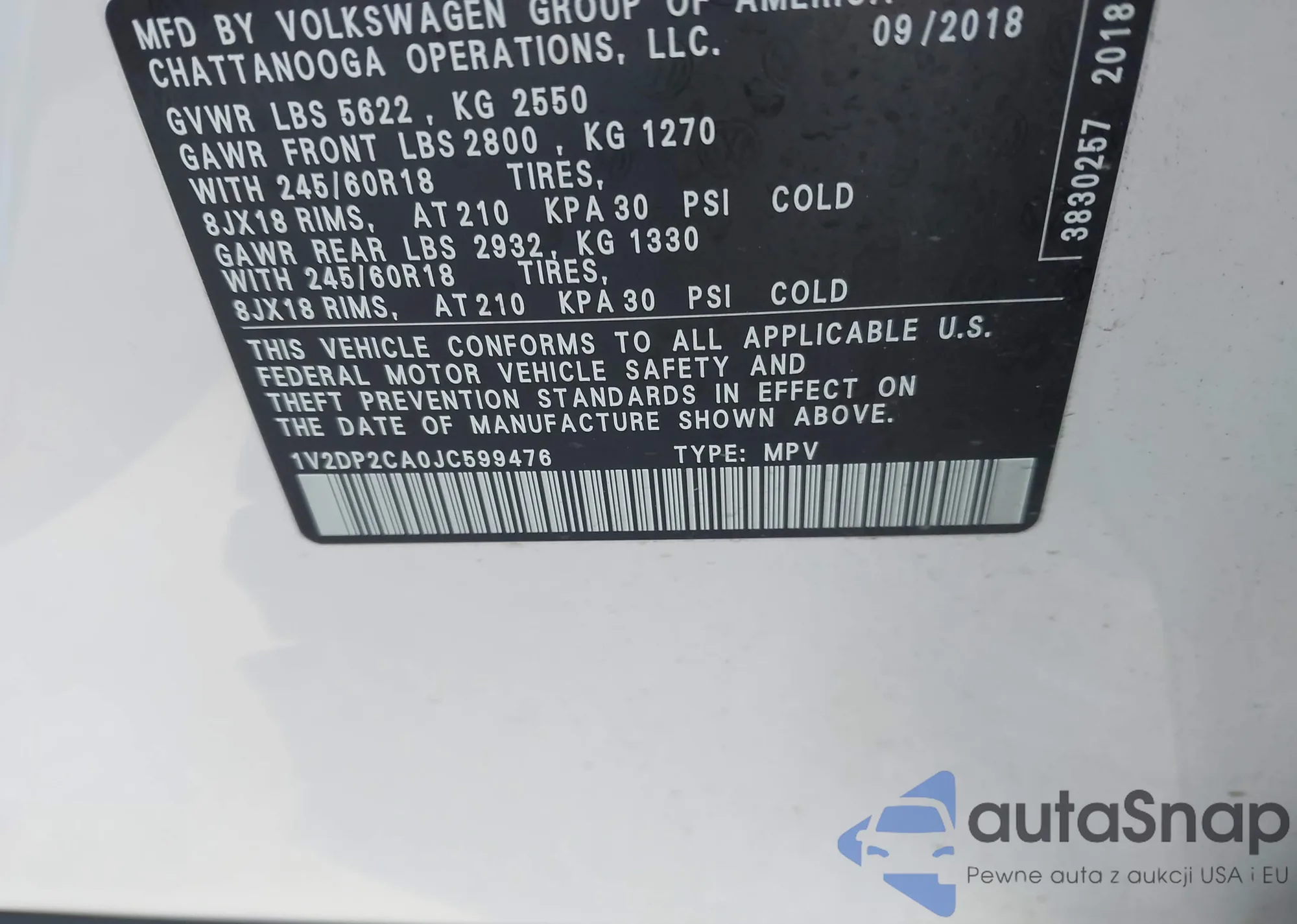 • VIN: 1V2DP2CA0JC599476