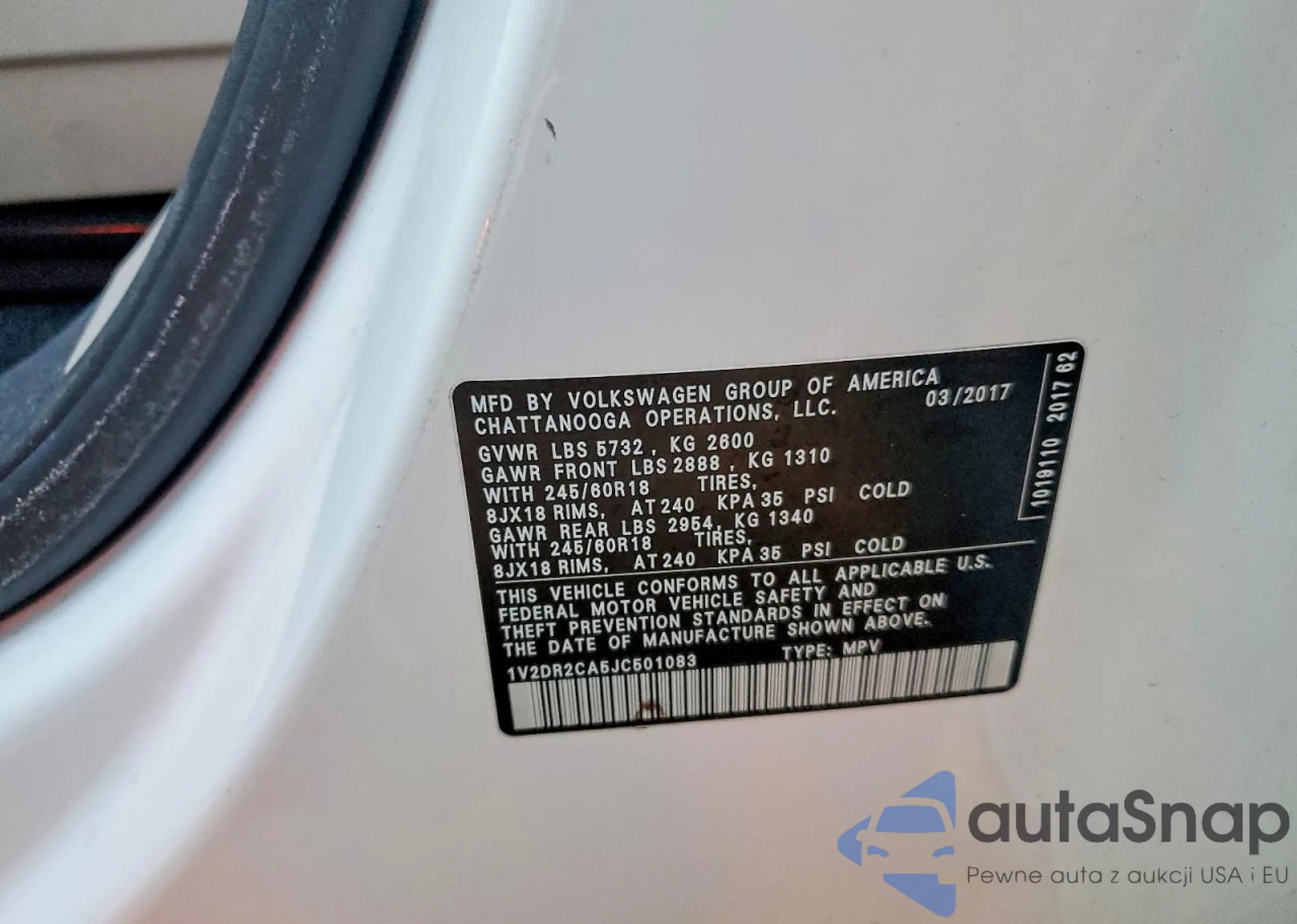 The car Volkswagen Atlas 2018 (VIN 1V2DR2CA5JC501083) is sold by an unverified seller. We recommend checking the Carfax report and confirming registration possibilities before purchase.