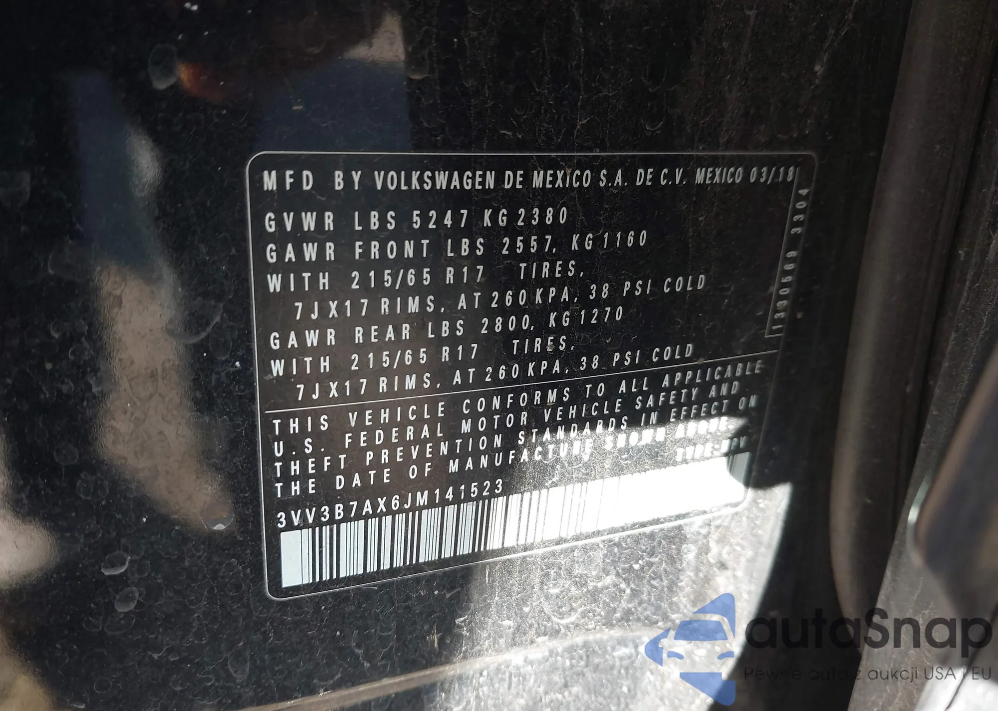 VIN: 3VV3B7AX6JM141523