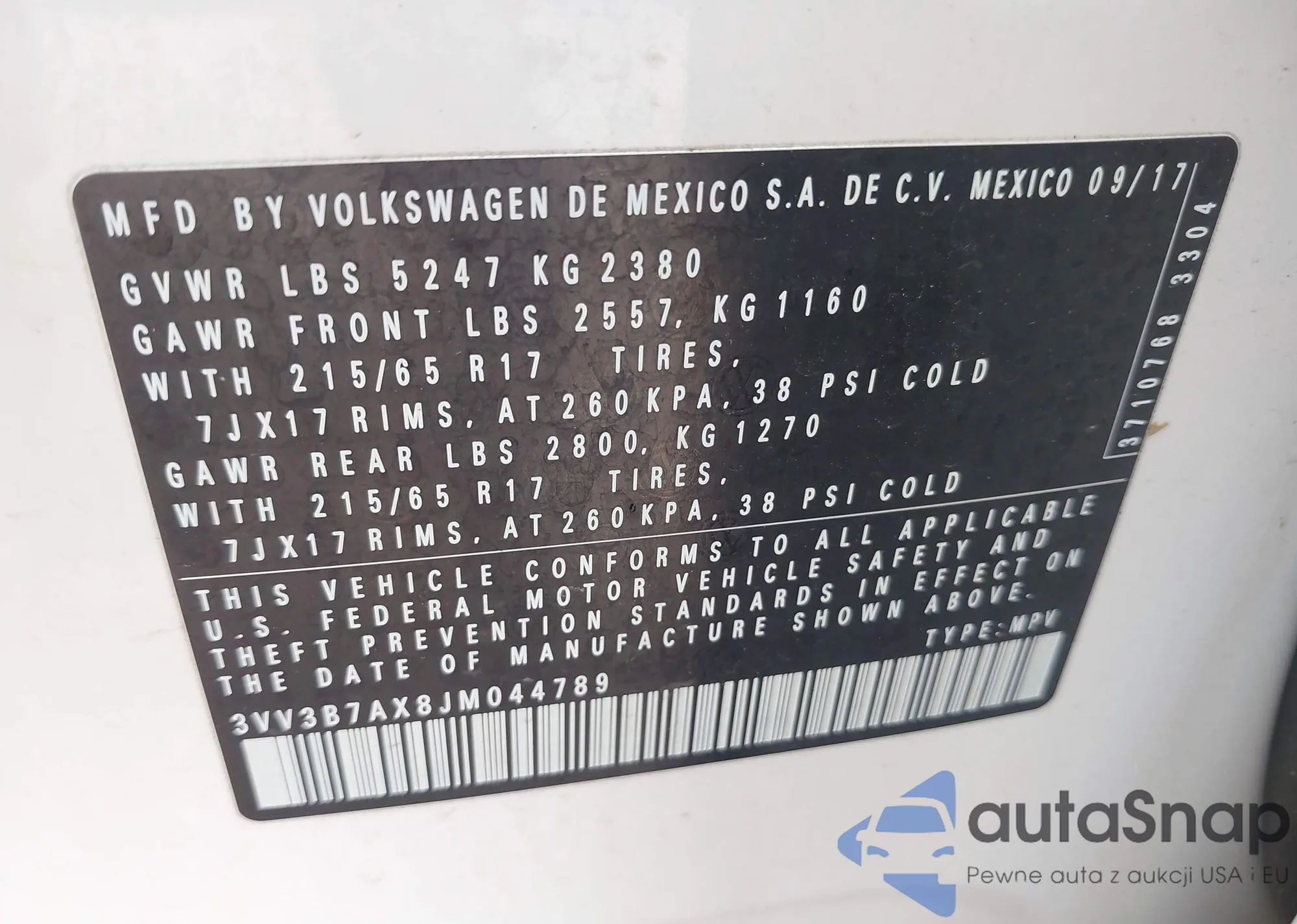 VIN: 3VV3B7AX8JM044789