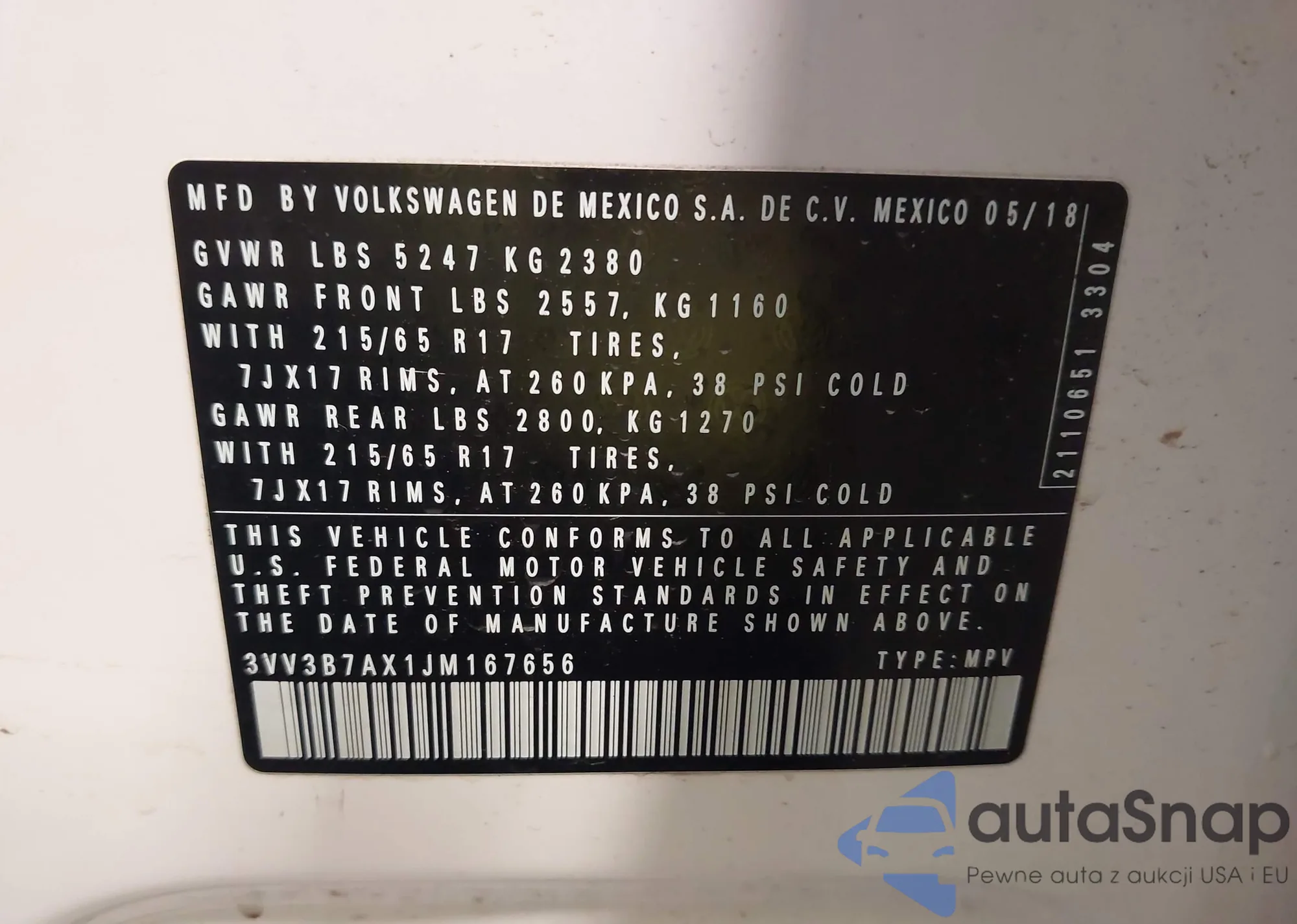 VIN: 3VV3B7AX1JM167656