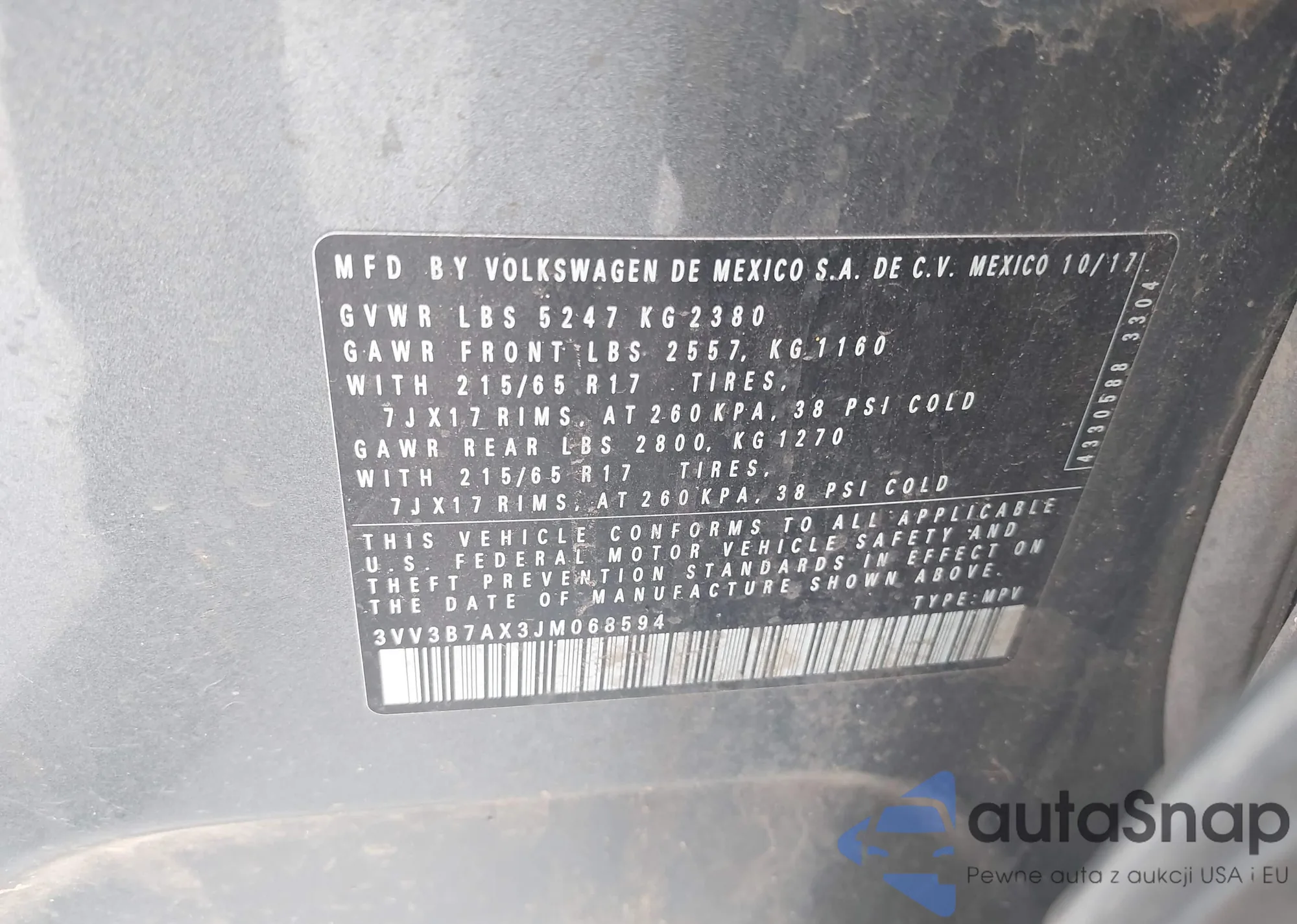 VIN: 3VV3B7AX3JM068594