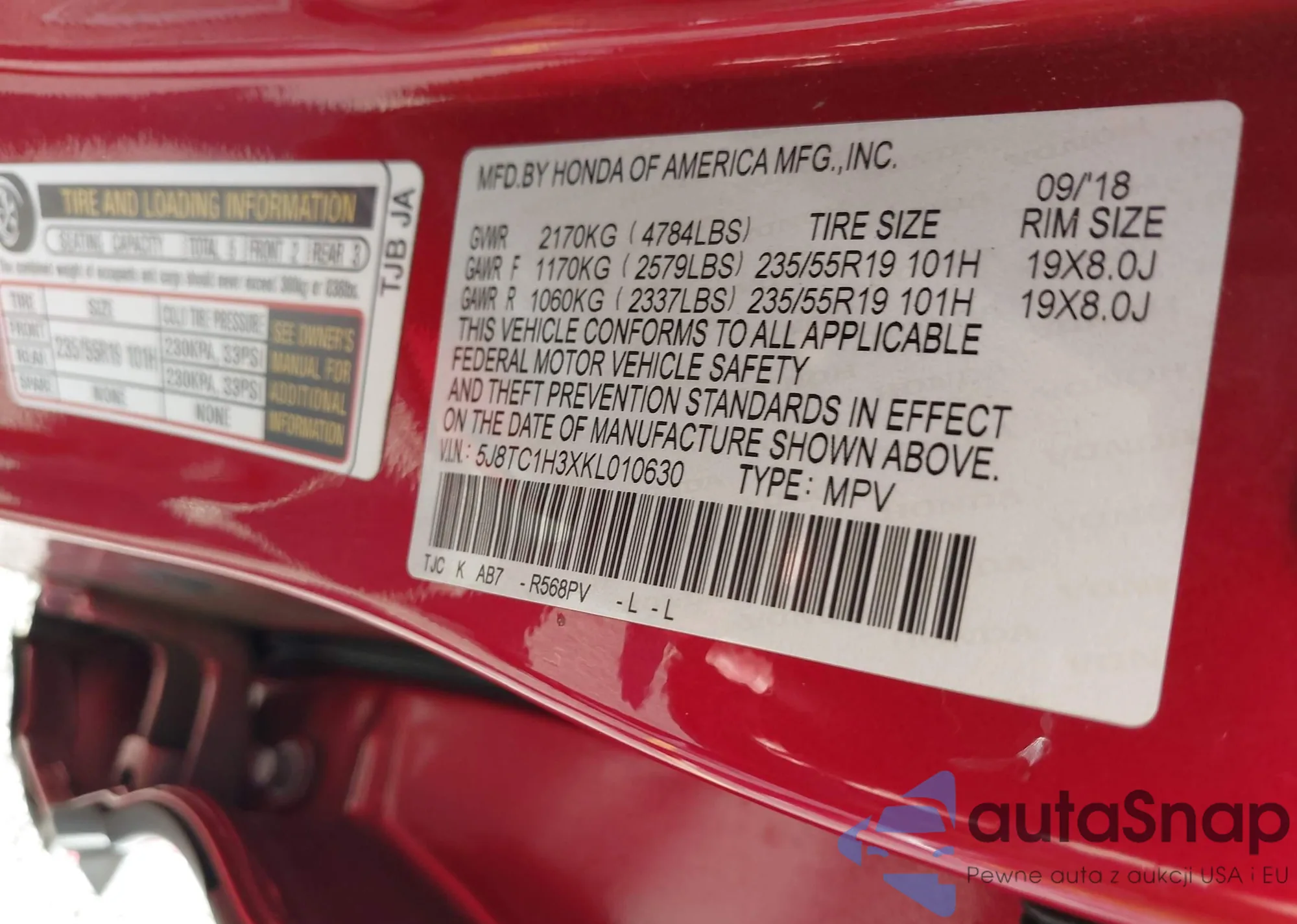 VIN: 5J8TC1H3XKL010630