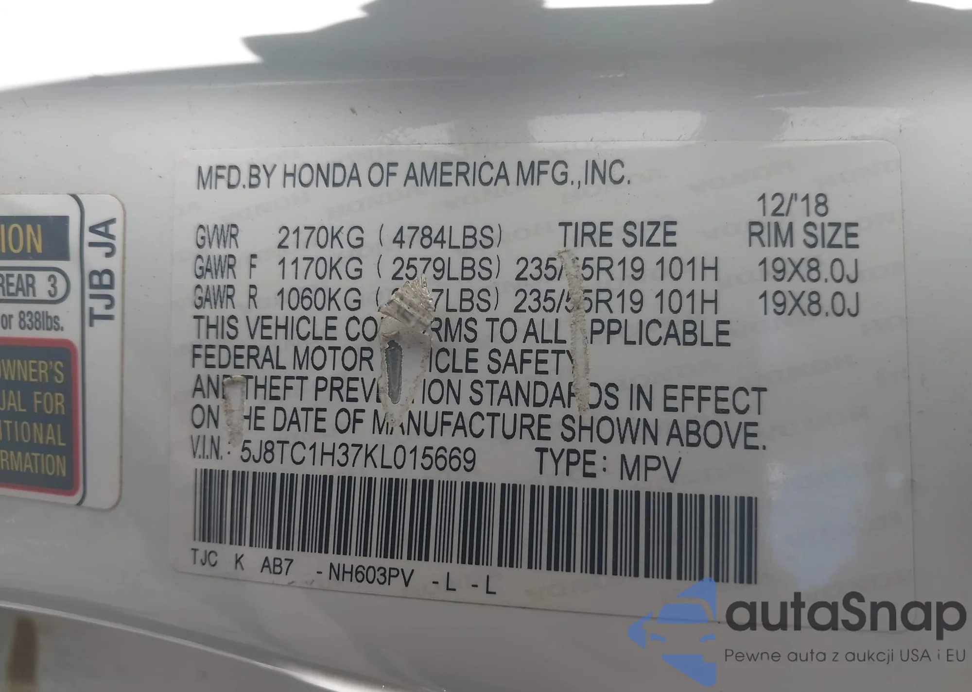 VIN: 5J8TC1H37KL015669
