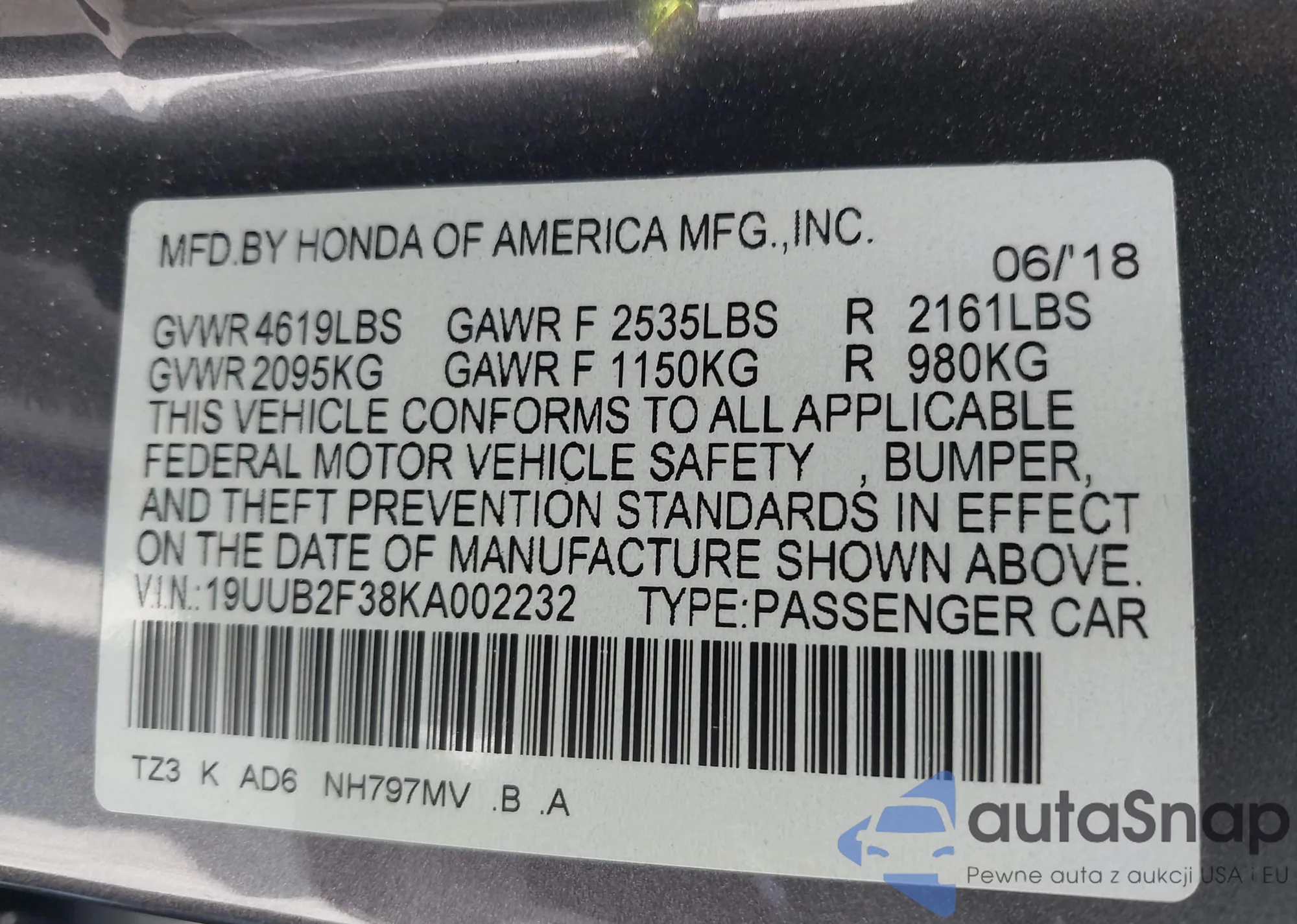 VIN: 19UUB2F38KA002232