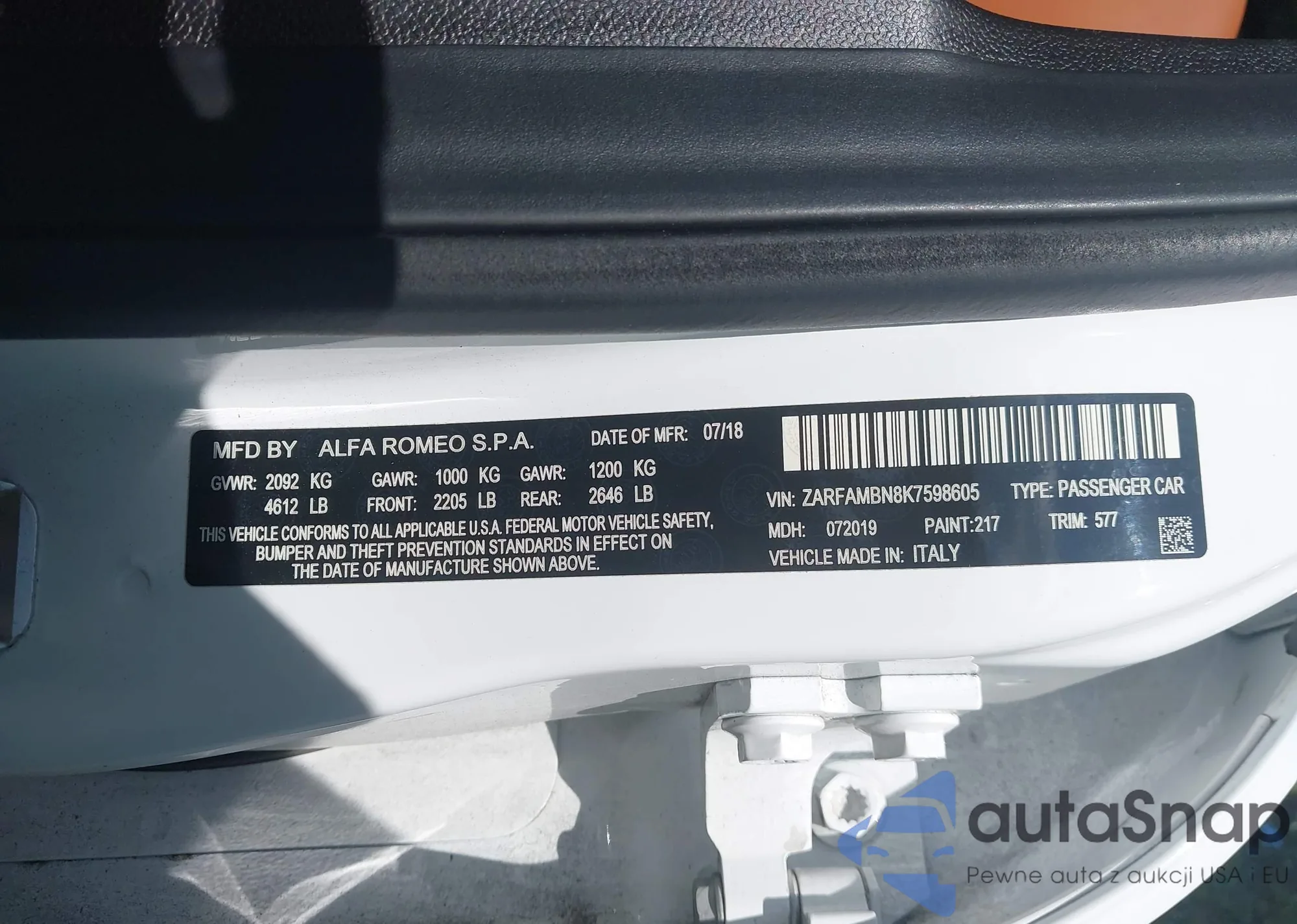 VIN: ZARFAMBN8K7598605