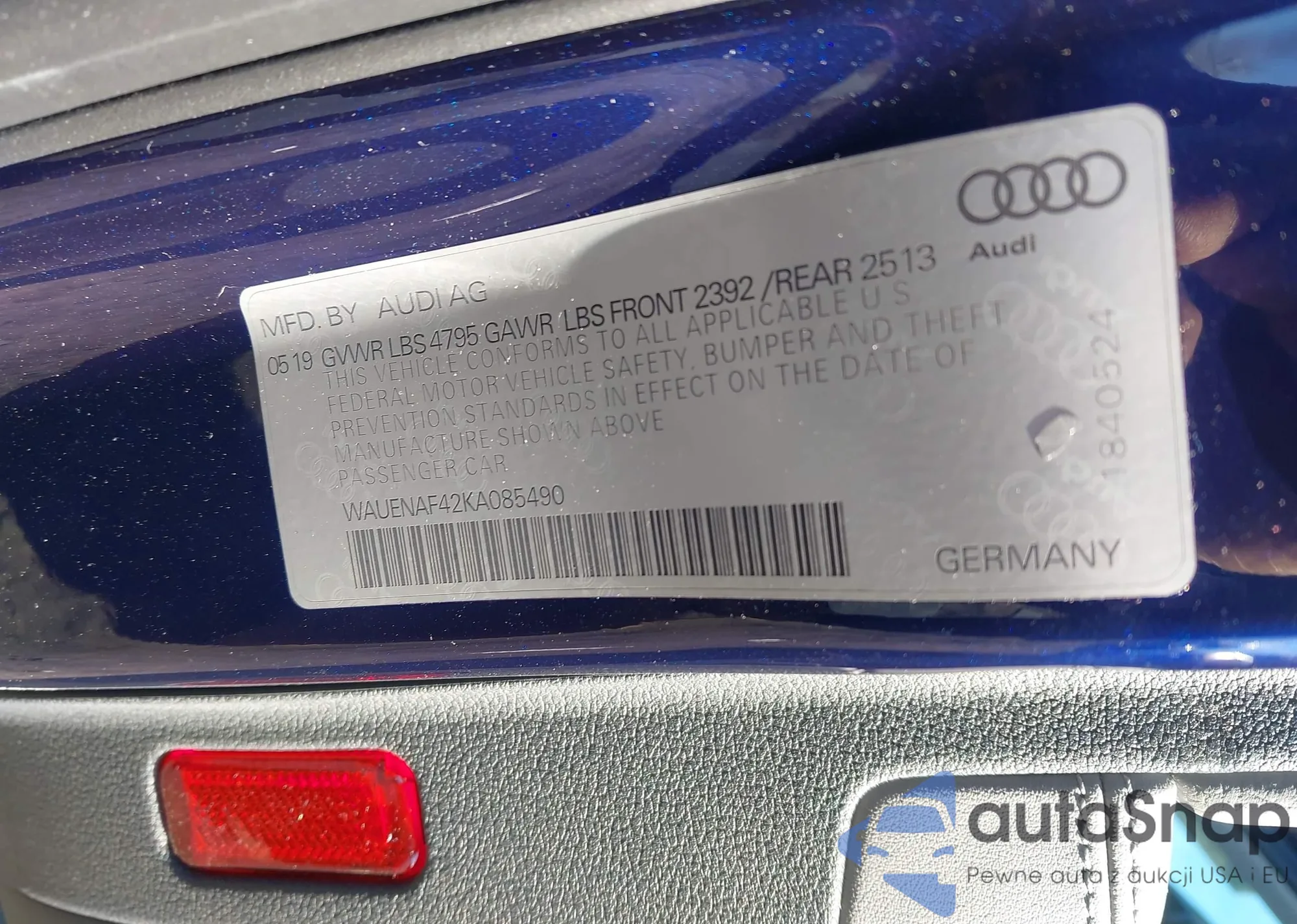 • VIN: WAUENAF42KA085490