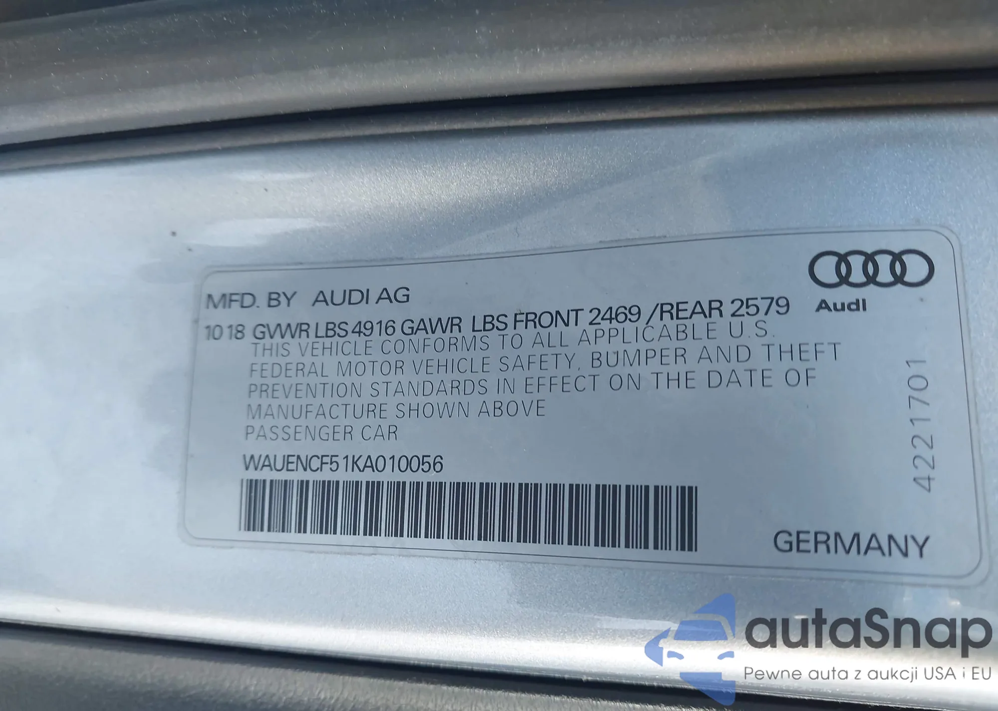 • VIN: WAUENCF51KA010056