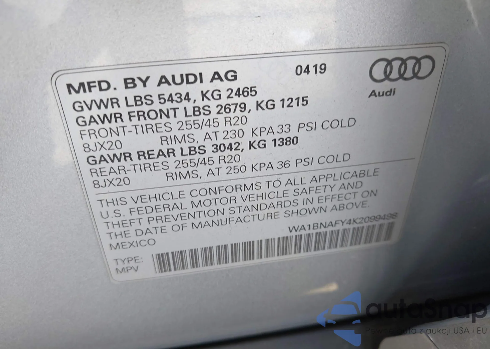 VIN: WA1BNAFY4K2099498