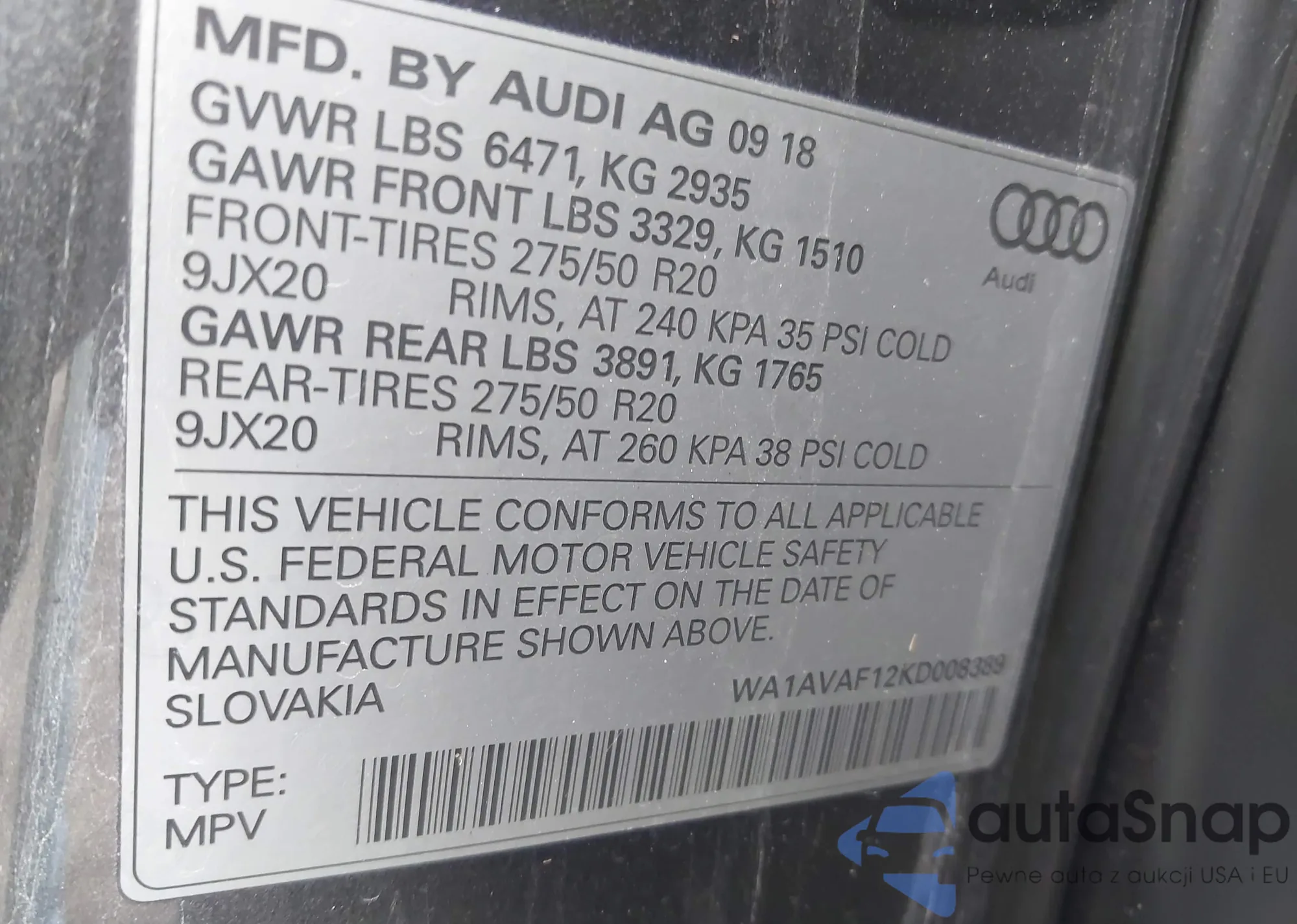 VIN: WA1AVAF12KD008389