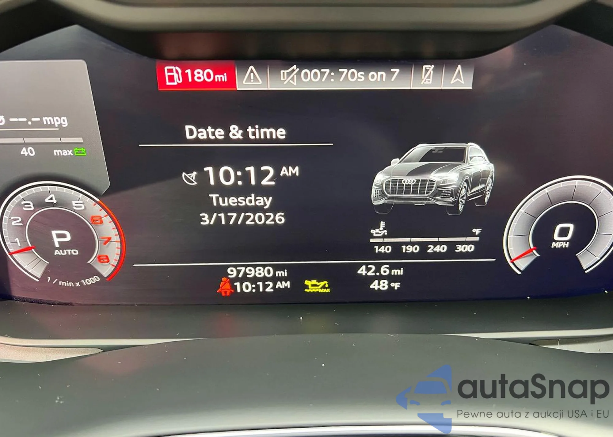 The car Audi Q8 2019 (VIN WA1EVAF19KD030777) is sold by an unverified seller. We recommend checking the Carfax report and confirming registration possibilities before purchase.