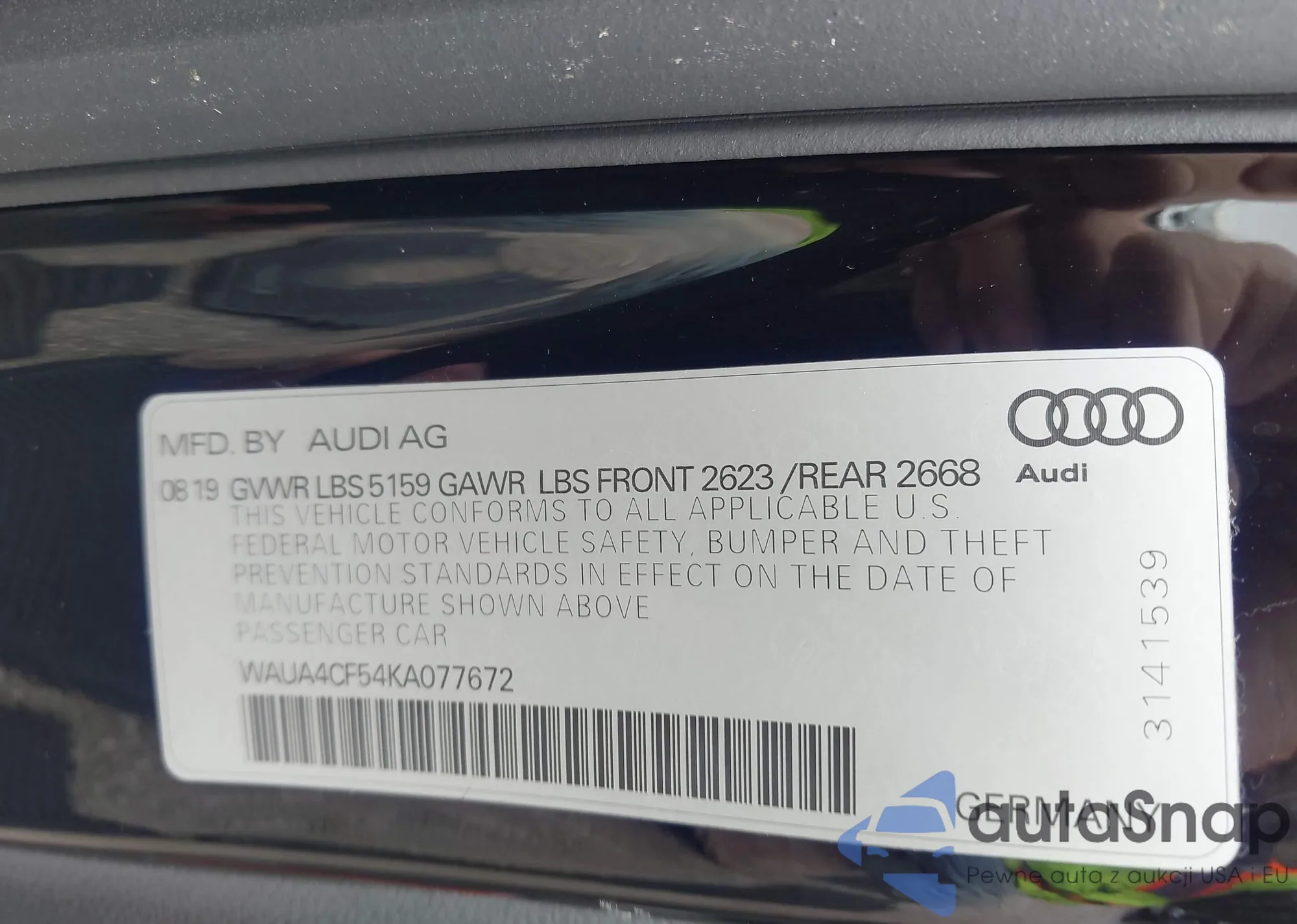 VIN: WAUA4CF54KA077672