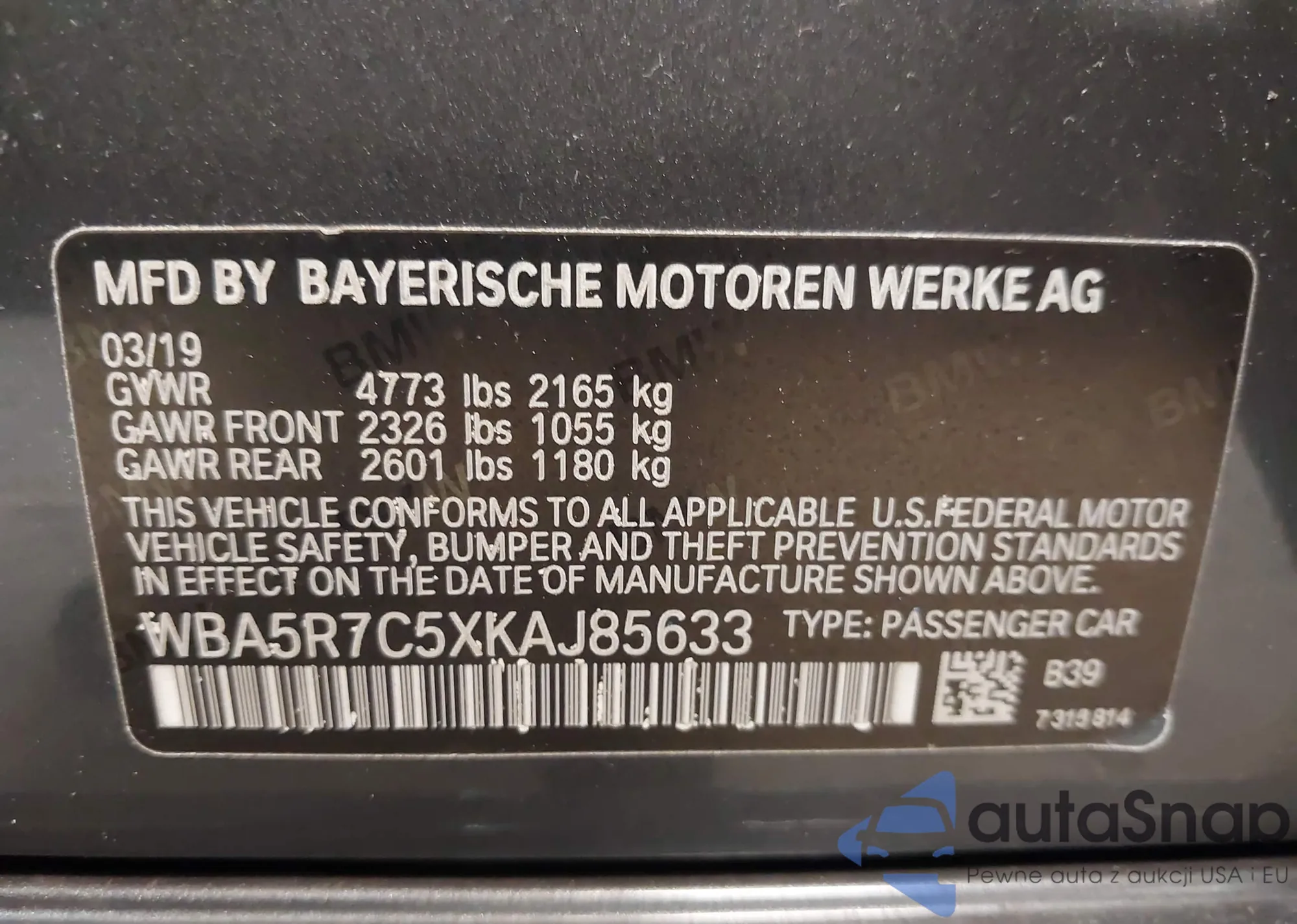VIN: WBA5R7C5XKAJ85633