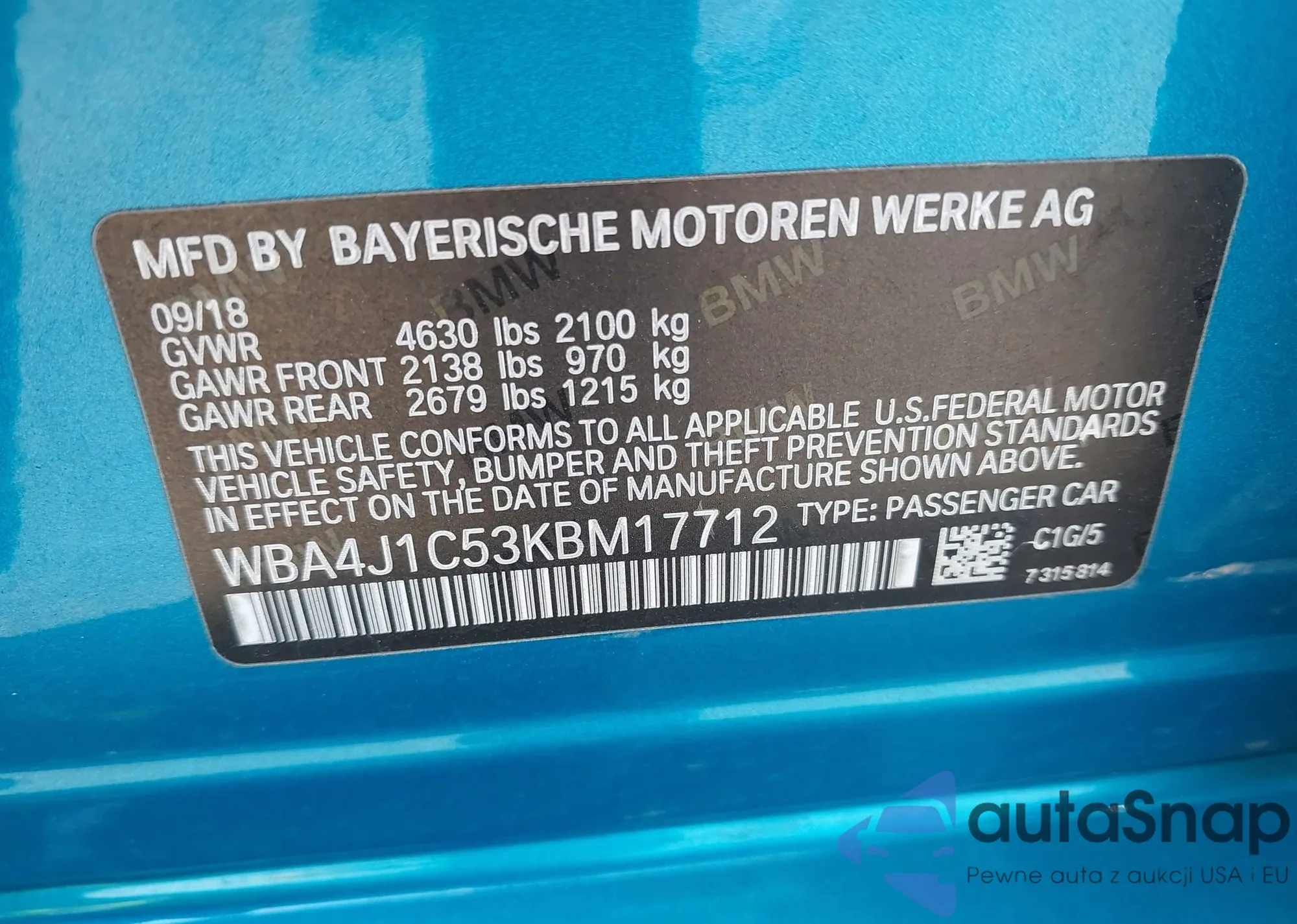 VIN: WBA4J1C53KBM17712