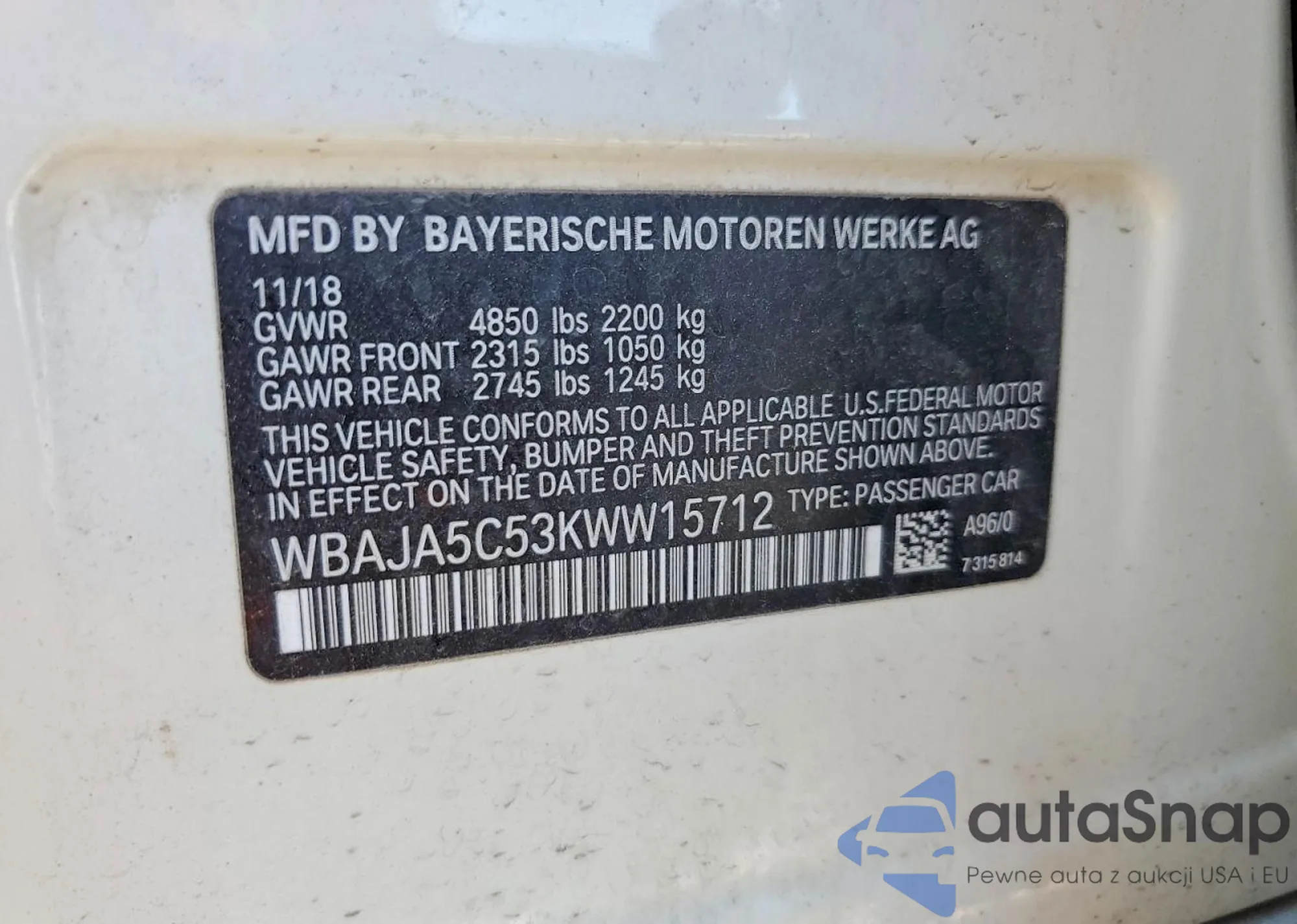 VIN: WBAJA5C53KWW15712