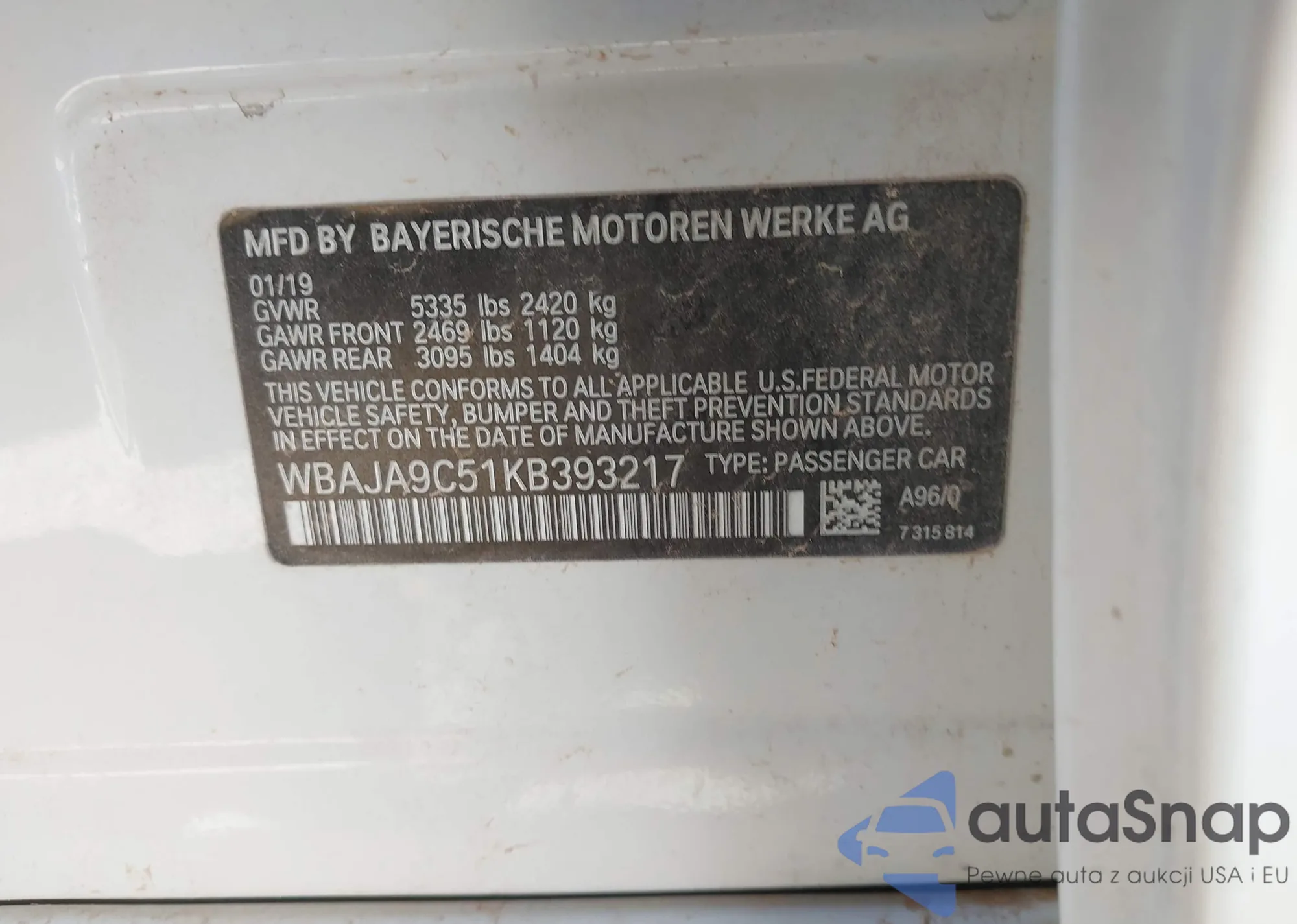 WBAJA9C51KB393217 IAAI