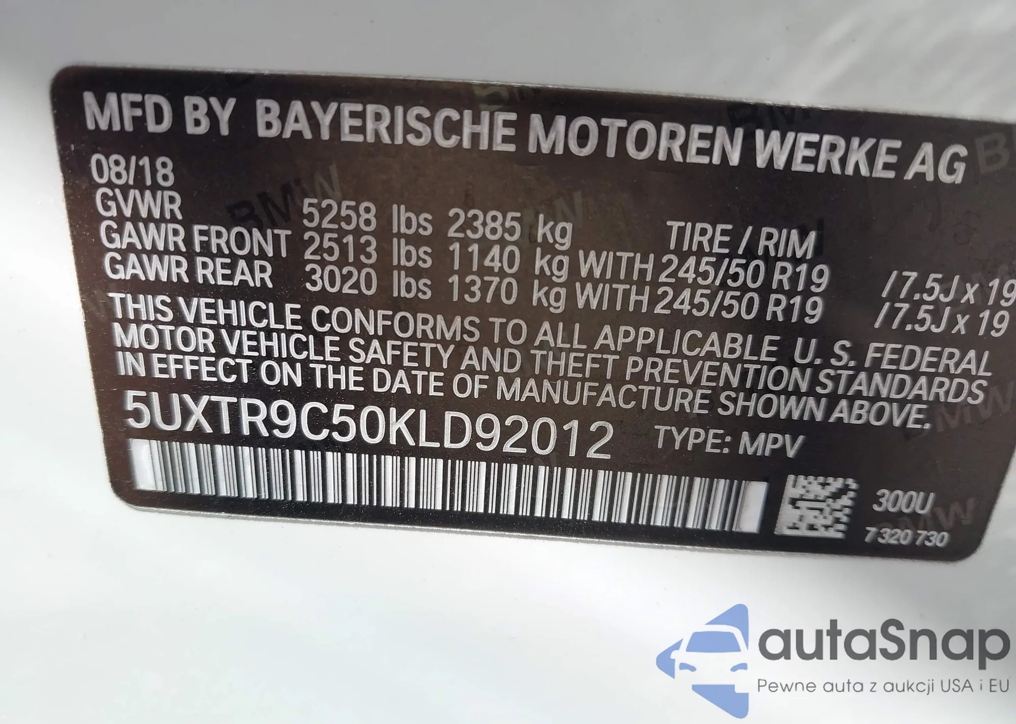 VIN: 5UXTR9C50KLD92012