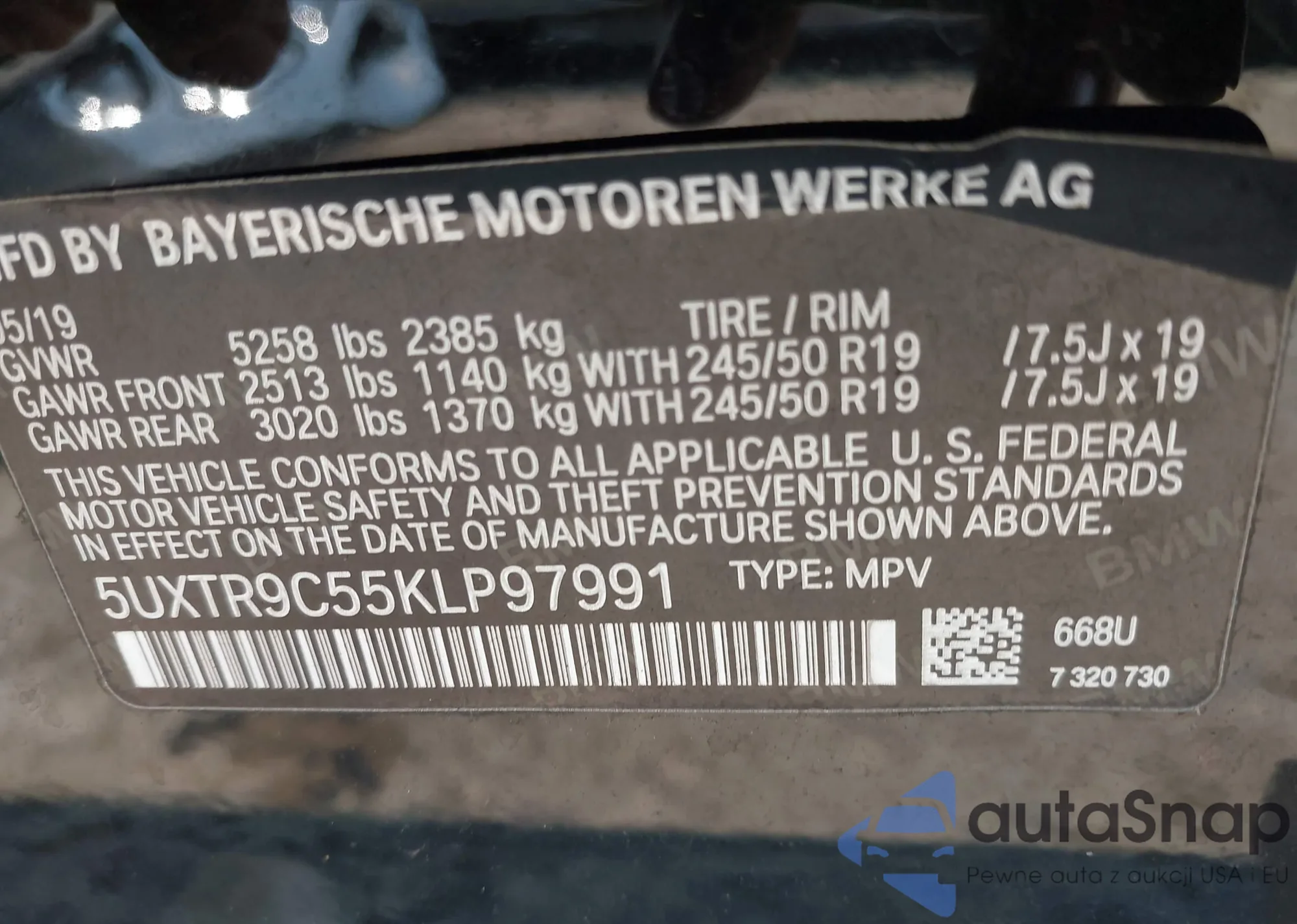 The car BMW X3 2019 (VIN 5UXTR9C55KLP97991) has not been auctioned before. The documents are clean, and the mileage matches or is below the market average. Sold by an insurance company – we recommend purchase. Delivery to the port will take approx. 6–8 weeks.