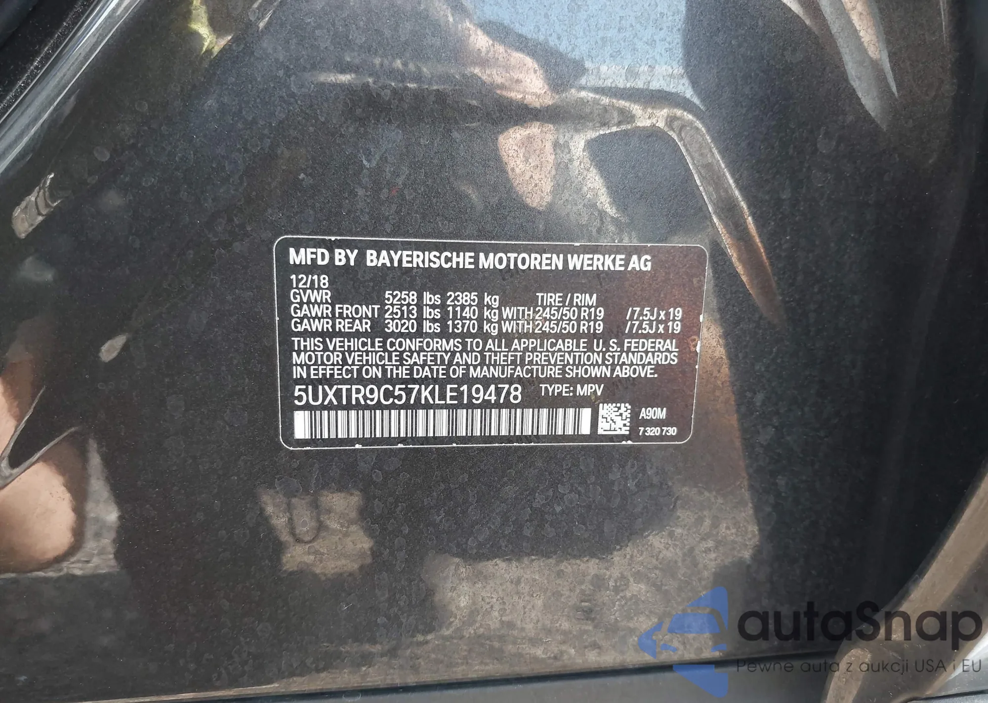 VIN: 5UXTR9C57KLE19478