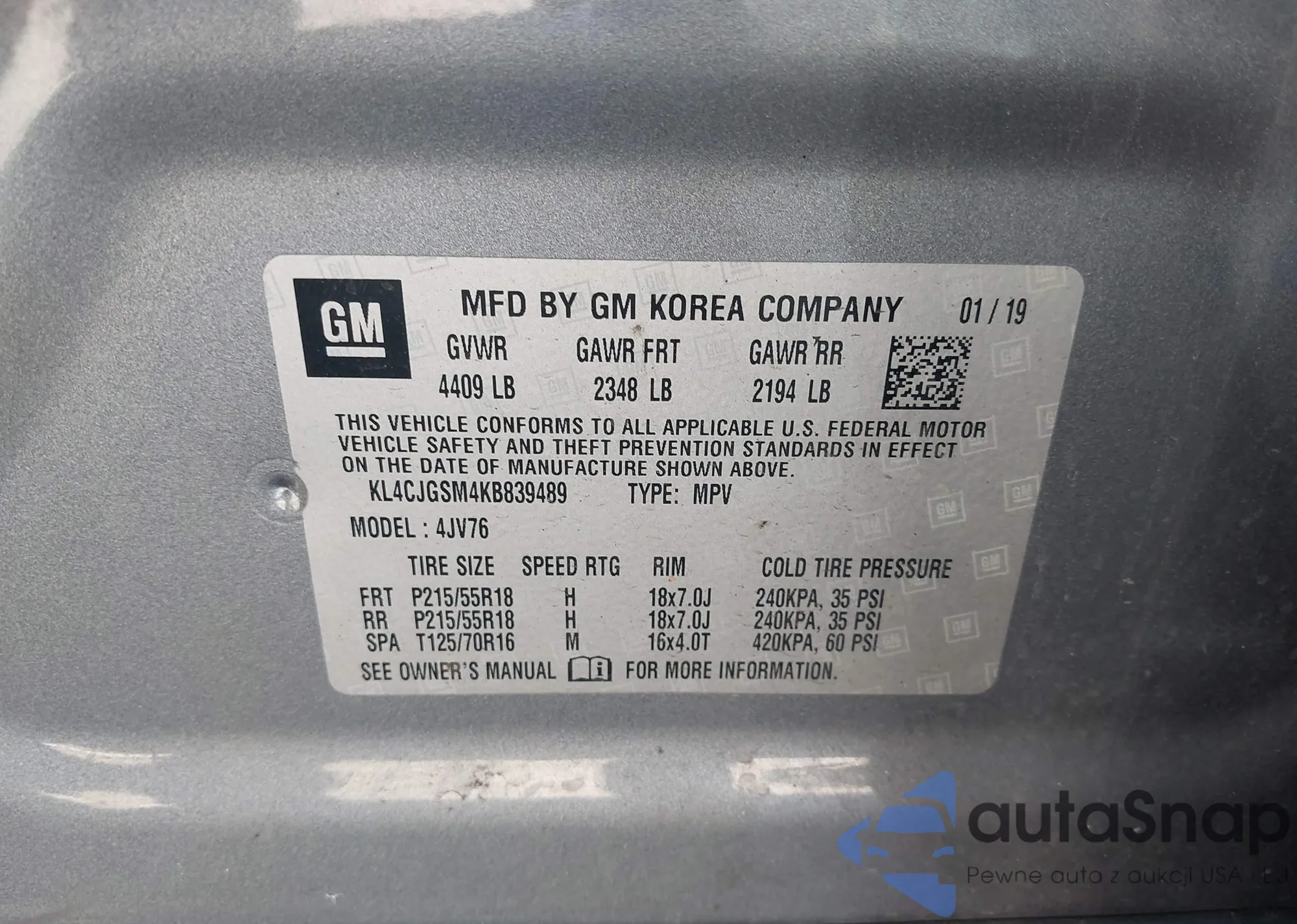 VIN: KL4CJGSM4KB839489