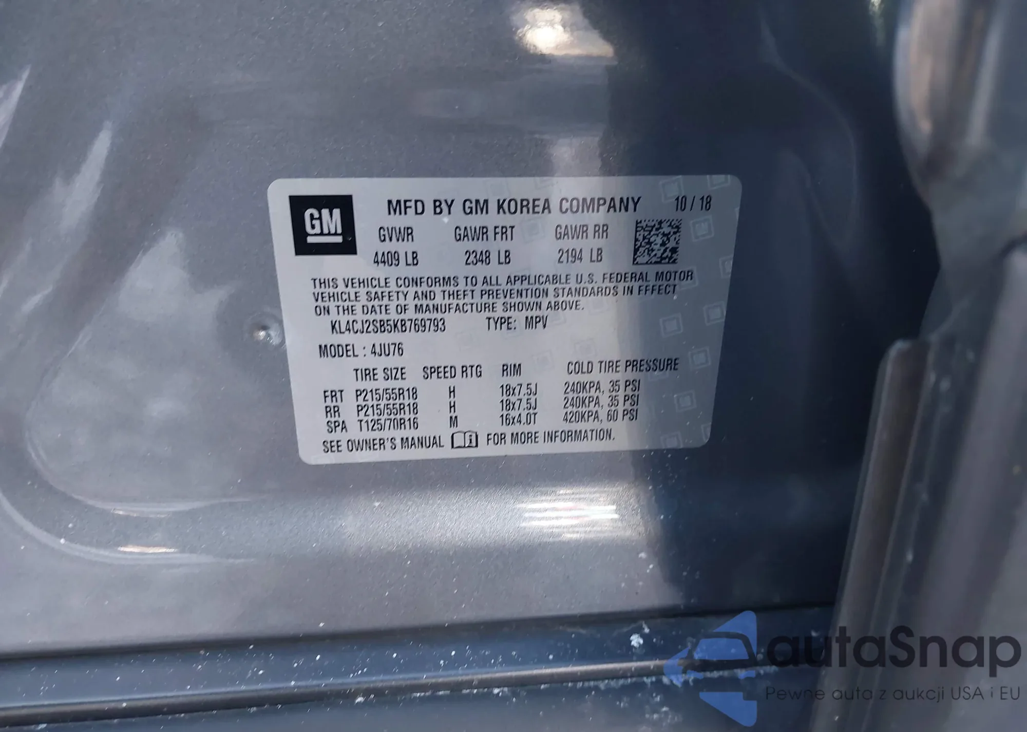 • VIN: KL4CJ2SB5KB769793