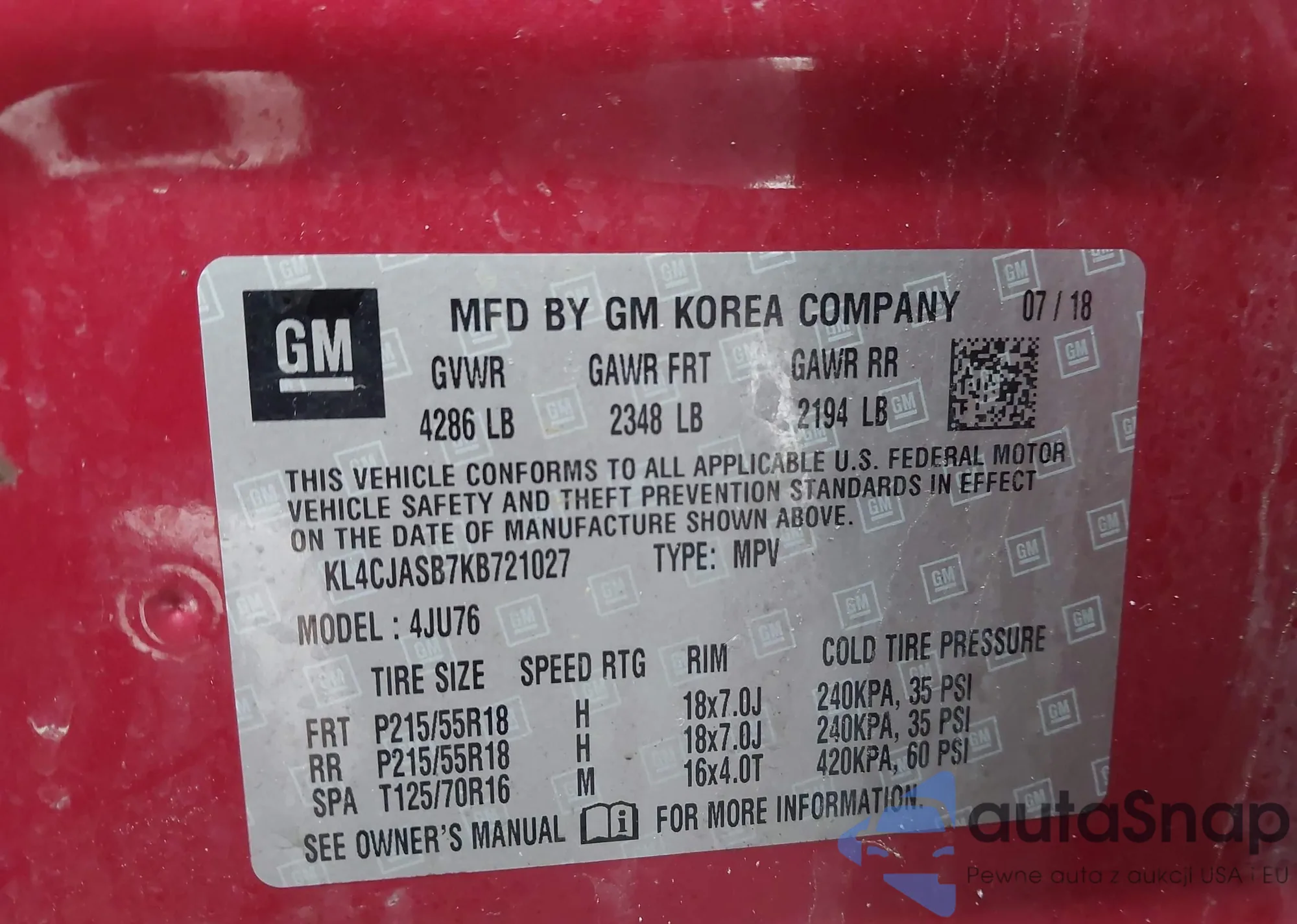 VIN: KL4CJASB7KB721027