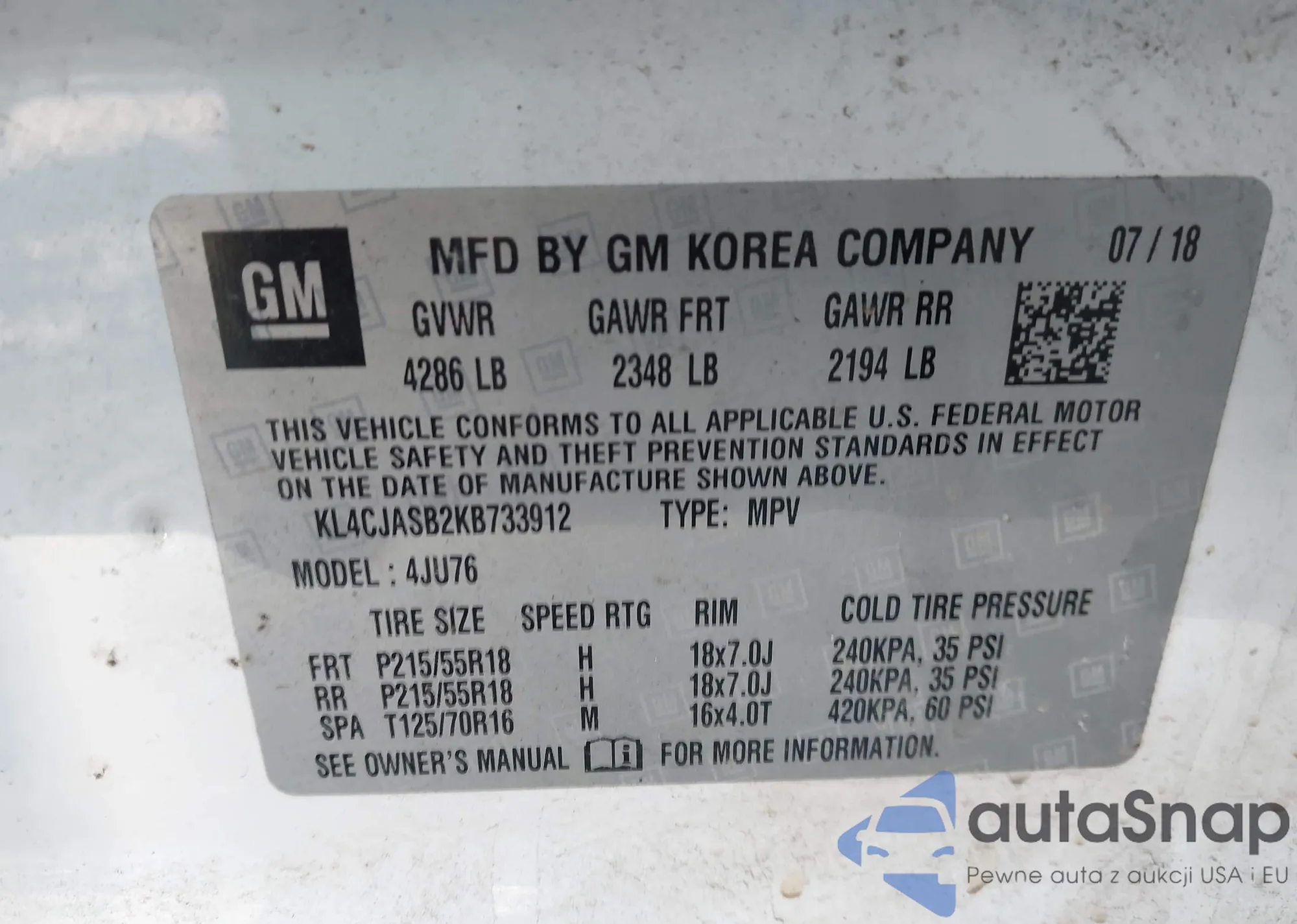• VIN: KL4CJASB2KB733912