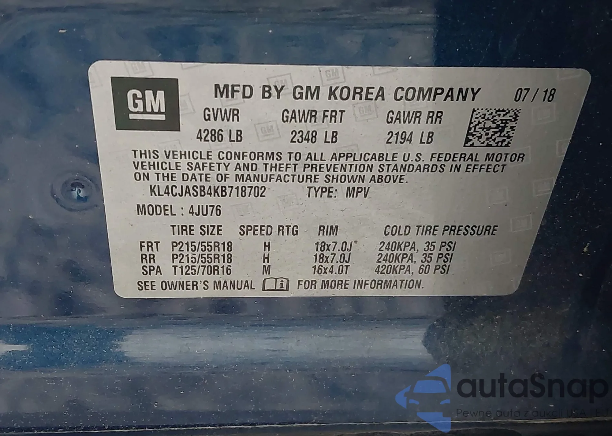 VIN: KL4CJASB4KB718702
