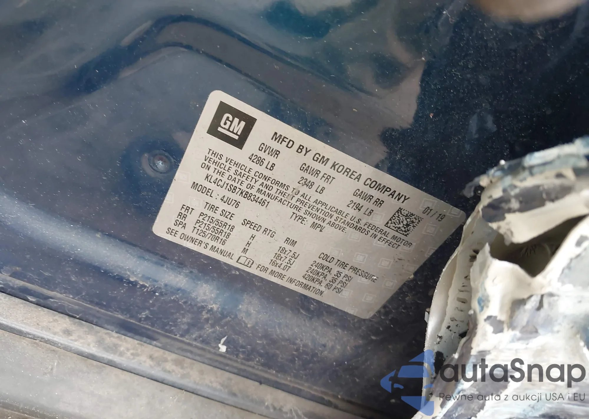 VIN: KL4CJ1SB7KB834461