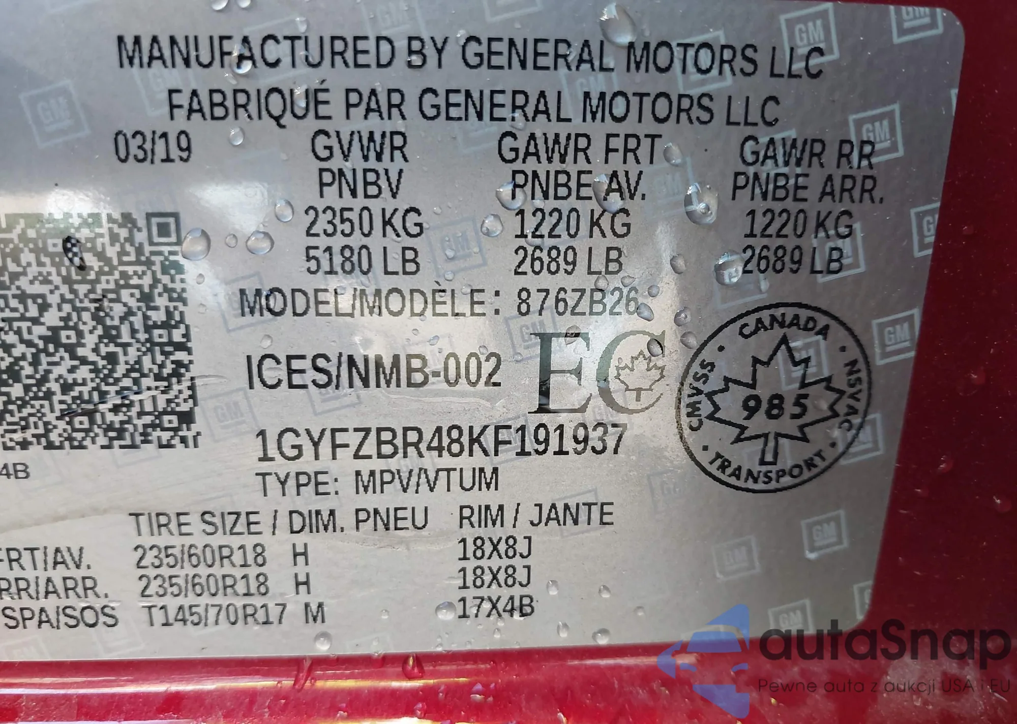 VIN: 1GYFZBR48KF191937