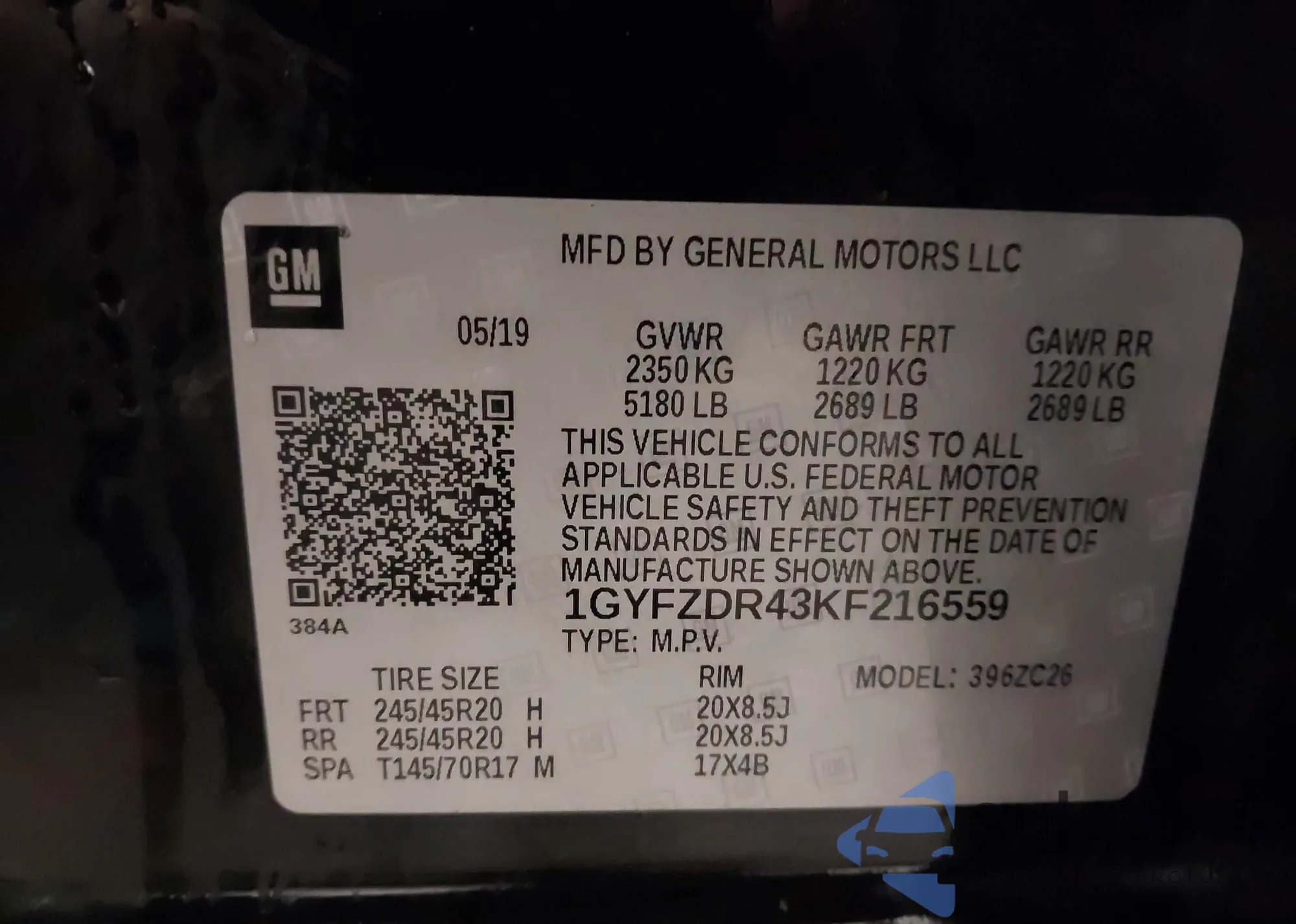 • VIN: 1GYFZDR43KF216559