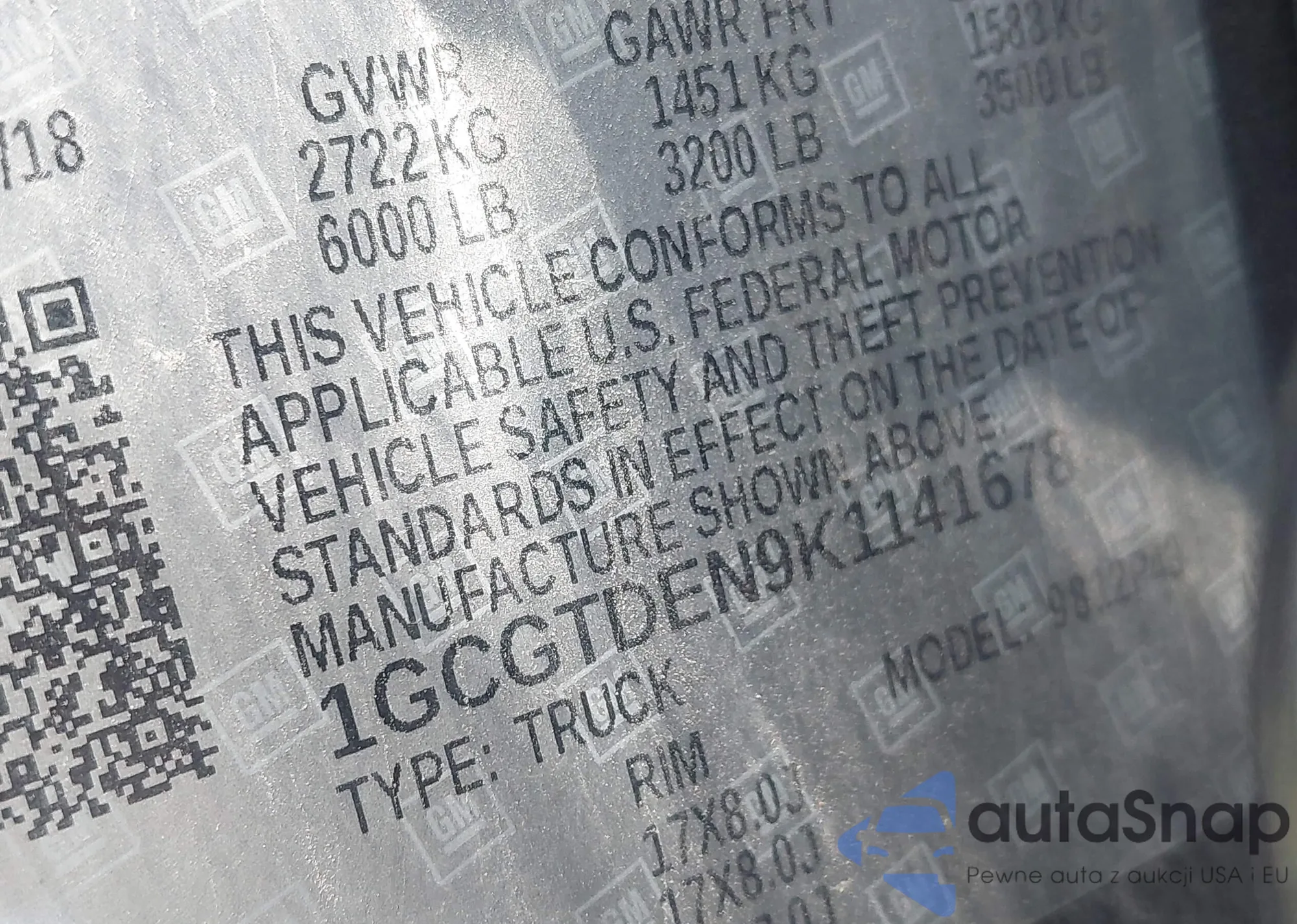 VIN: 1GCGTDEN9K1141678
