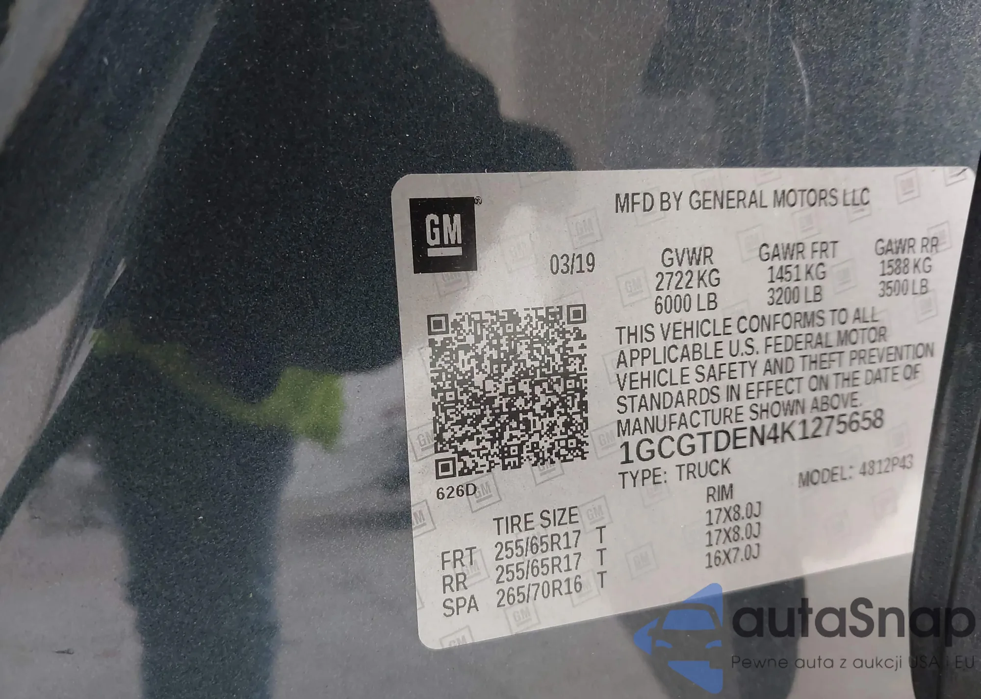 VIN: 1GCGTDEN4K1275658