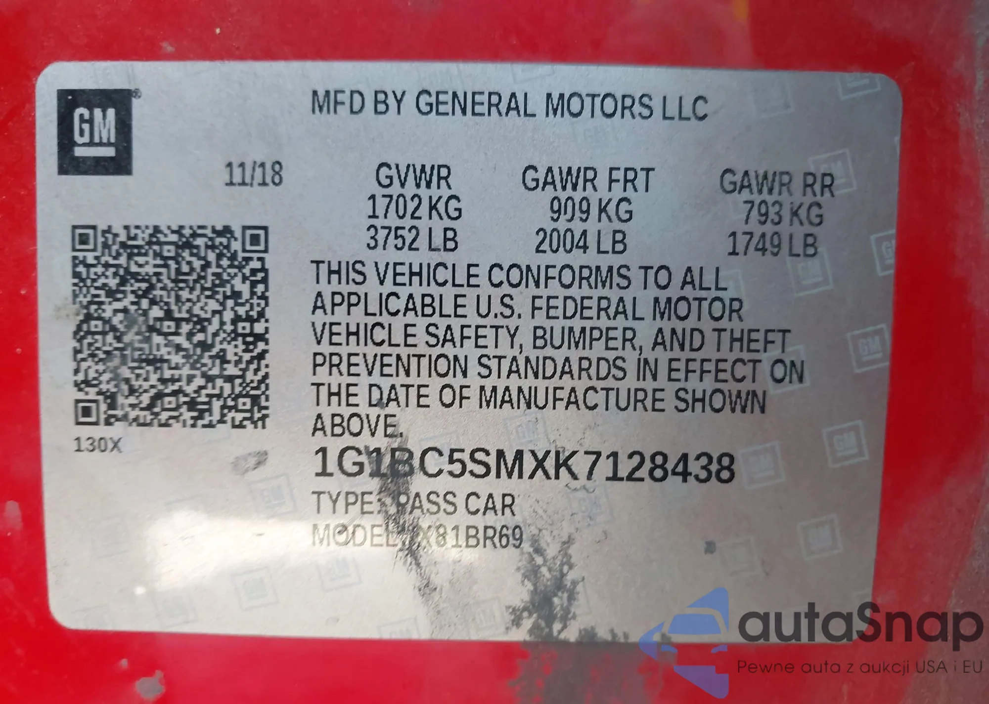 The car Chevrolet Cruze 2019 (VIN 1G1BC5SMXK7128438) has not been auctioned before. The documents are clean, and the mileage matches or is below the market average. Sold by an insurance company – we recommend purchase. Delivery to the port will take approx. 6–8 weeks.