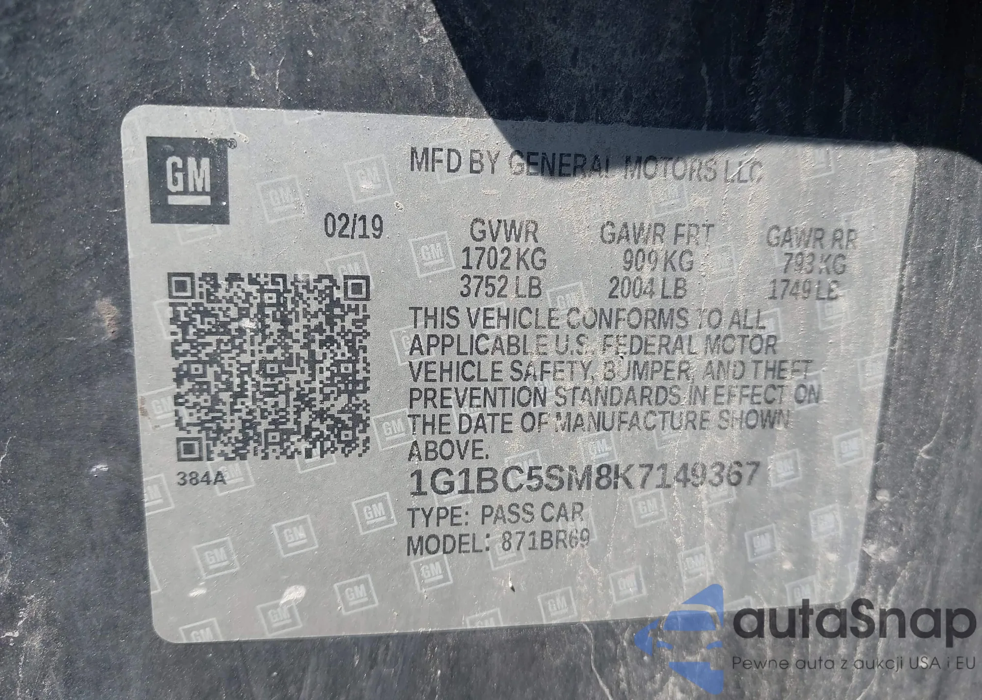 VIN: 1G1BC5SM8K7149367