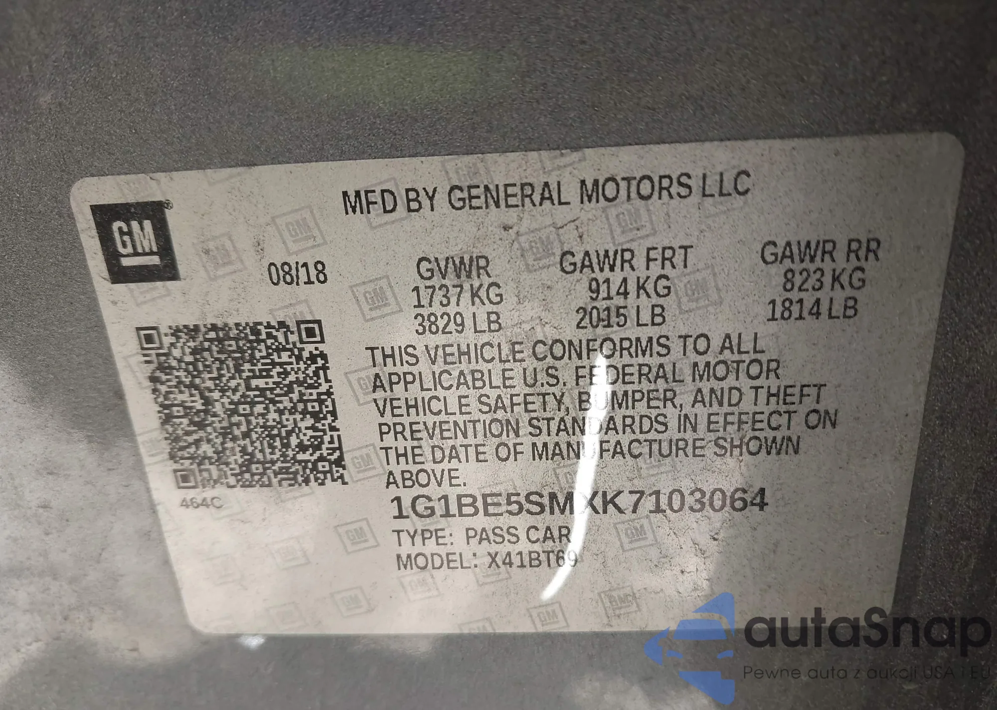 VIN: 1G1BE5SMXK7103064