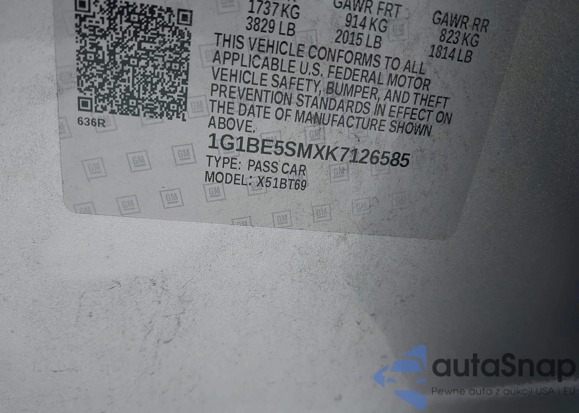 VIN: 1G1BE5SMXK7126585